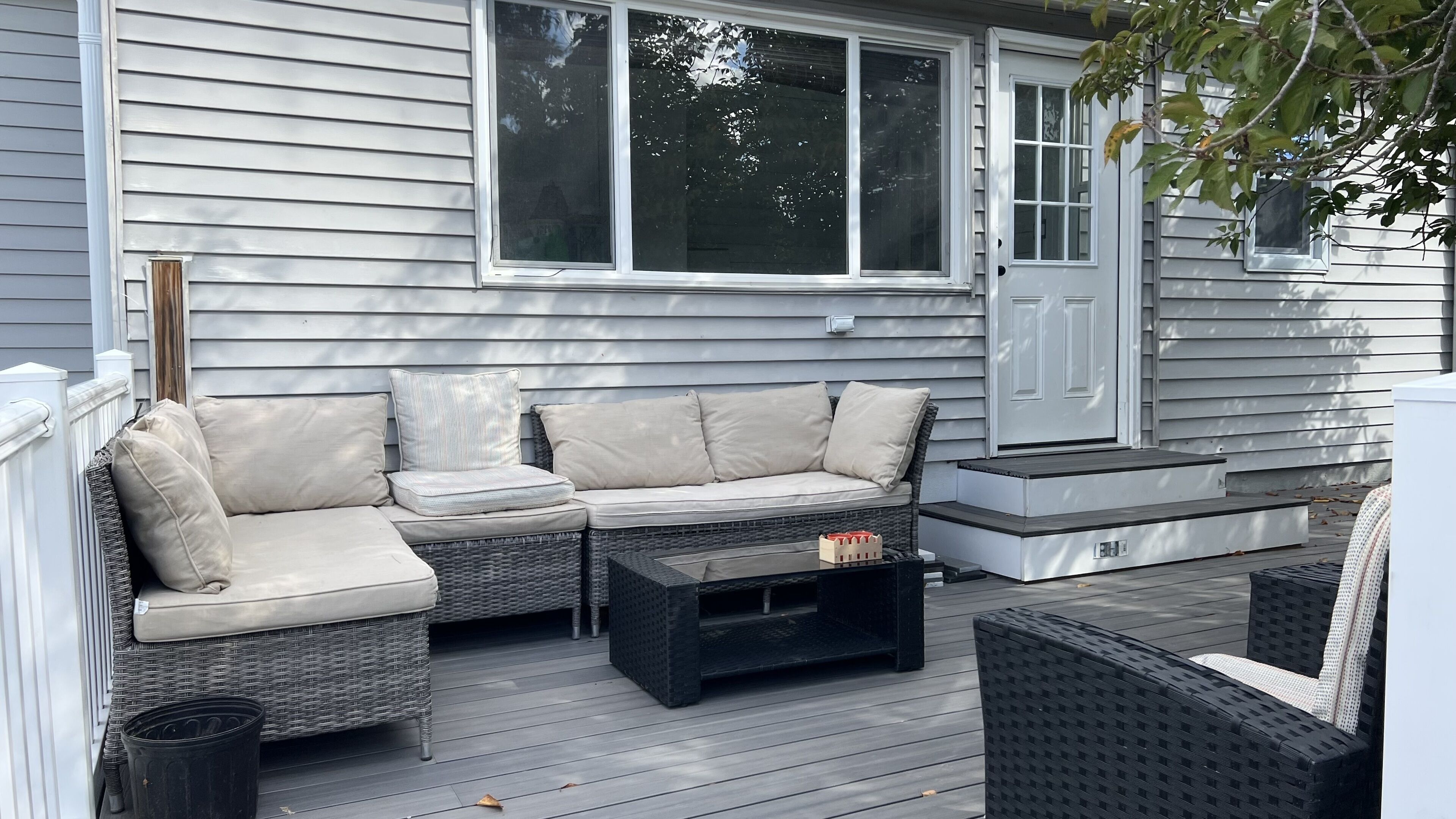 MAIN FEATURES: Fenced backyard, deck, Smart TV, DVD player, dining table, books