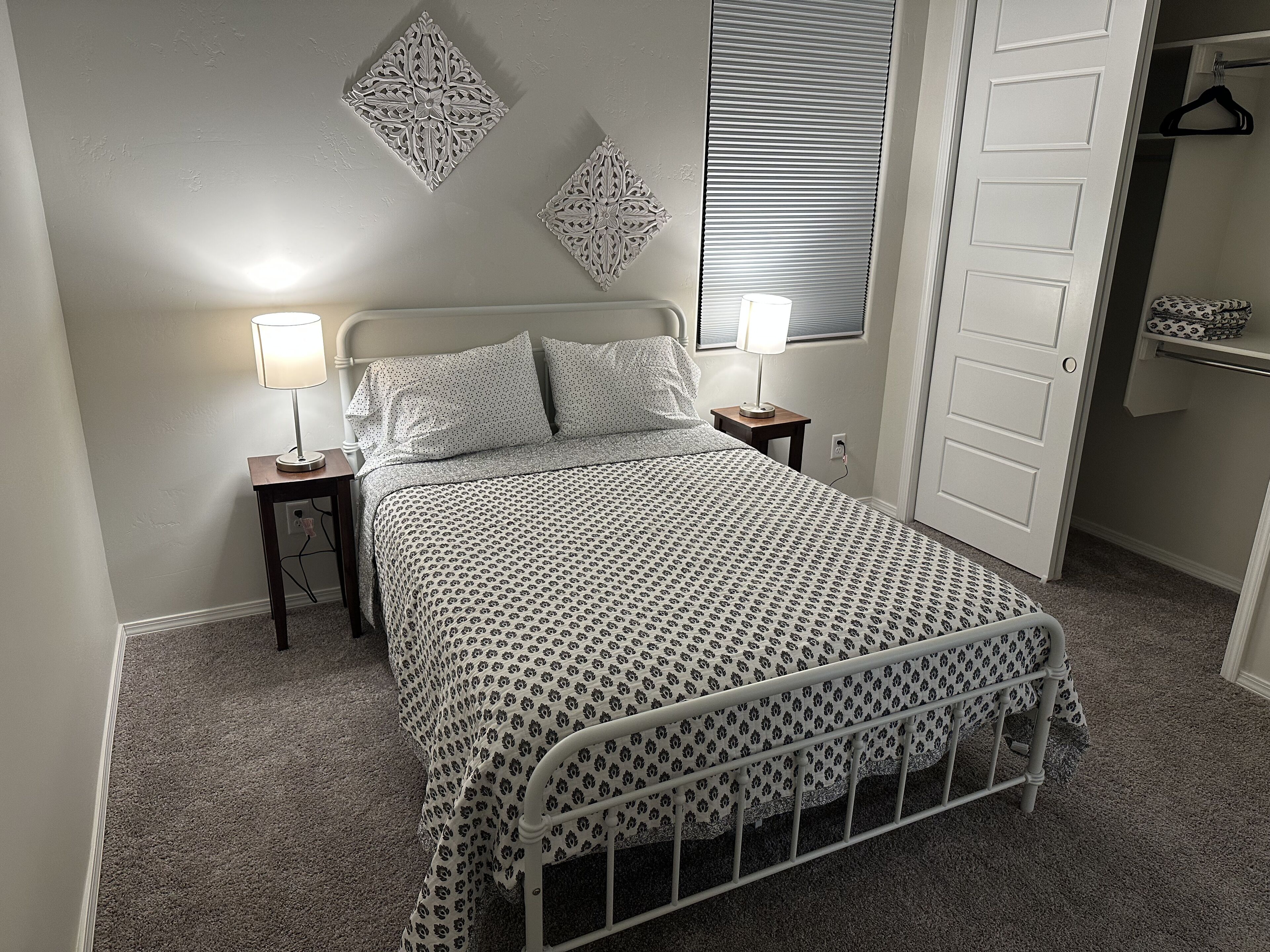 Relax with the whole family at this peaceful place to stay. Come and relax with a large TV in the living room and smaller one behind the dresser mirror in the Master Bedroom and the last one in the 2nd bedroom. All TVs are run off of the internet. Internet passwords in the helpful book as soon as you walk into the Diamond. In the City Limits of Belen - 35 miles South of Albuquerque - Quiet and secure - AC and heater unit in Master Bedroom and in 2nd bedroom - AC unit in the main living area, and gas heat for the main living area. Gas cooking - ice maker in the freezer. Many small appliances located in cabinets and in closet located in kitchen and living room area. There is a BBQ grill in the small side yard with the cooking utensils located in the living room closet. Covered parking for up to 2 cars. More parking available next to the house. Small, private and cozy too!