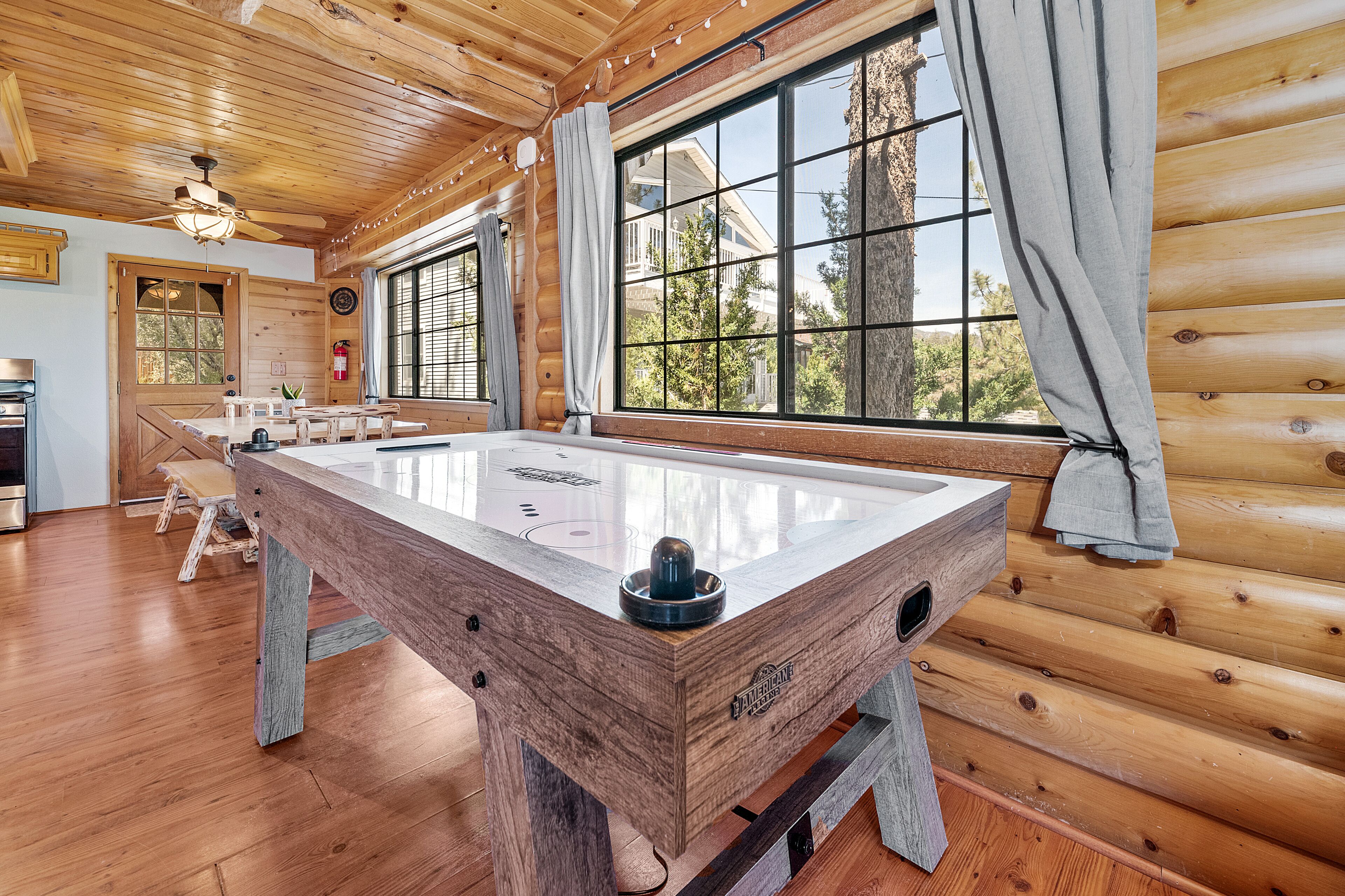 Pinglewood Cabin- Furnished Fawnskin Group Retreat is located in Fawnskin, just 7.4 miles from Alpine Slide at Magic Mountain and 7.9 miles from Big Bear Marina. The property is around 7.2 miles from Aspen Glen Picnic Area, 7.3 miles from Bear Mountain Golf Course, and a 18-minute walk from Grout Bay Recreation Area. The chalet features a children's playground and a 24-hour front desk. Offering direct access to a patio, the chalet consists of 1 bedroom. Featuring a balcony with mountain views, this chalet also comes with a TV, a well-equipped kitchen with an oven, a microwave, and a toaster, as well as 1 bathroom with a shower. The accommodation has a fireplace. A water park is available on-site and skiing can be enjoyed close to the chalet. Big Bear Solar Observatory is 1.9 miles from Pinglewood Cabin- Furnished Fawnskin Group Retreat, while Big Bear Discovery Center is 3 miles from the property. LA/Ontario International Airport is 57 miles away.