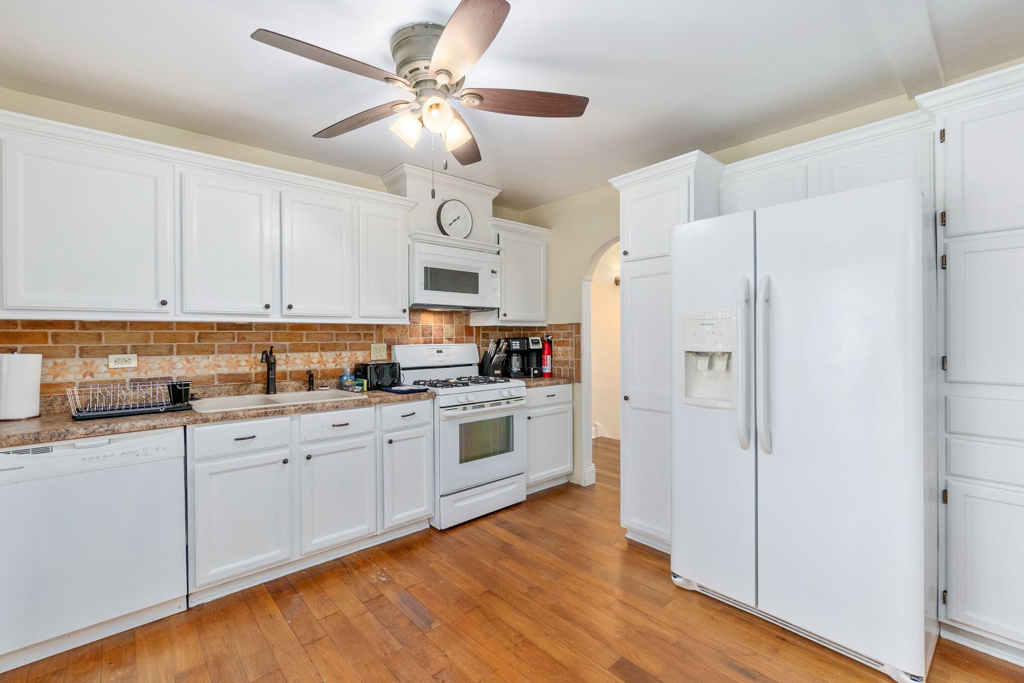 KITCHEN: Stove/oven, refrigerator, dishwasher, microwave, coffee maker, toaster, Crockpot, ice maker, cooking basics, dishware/flatware