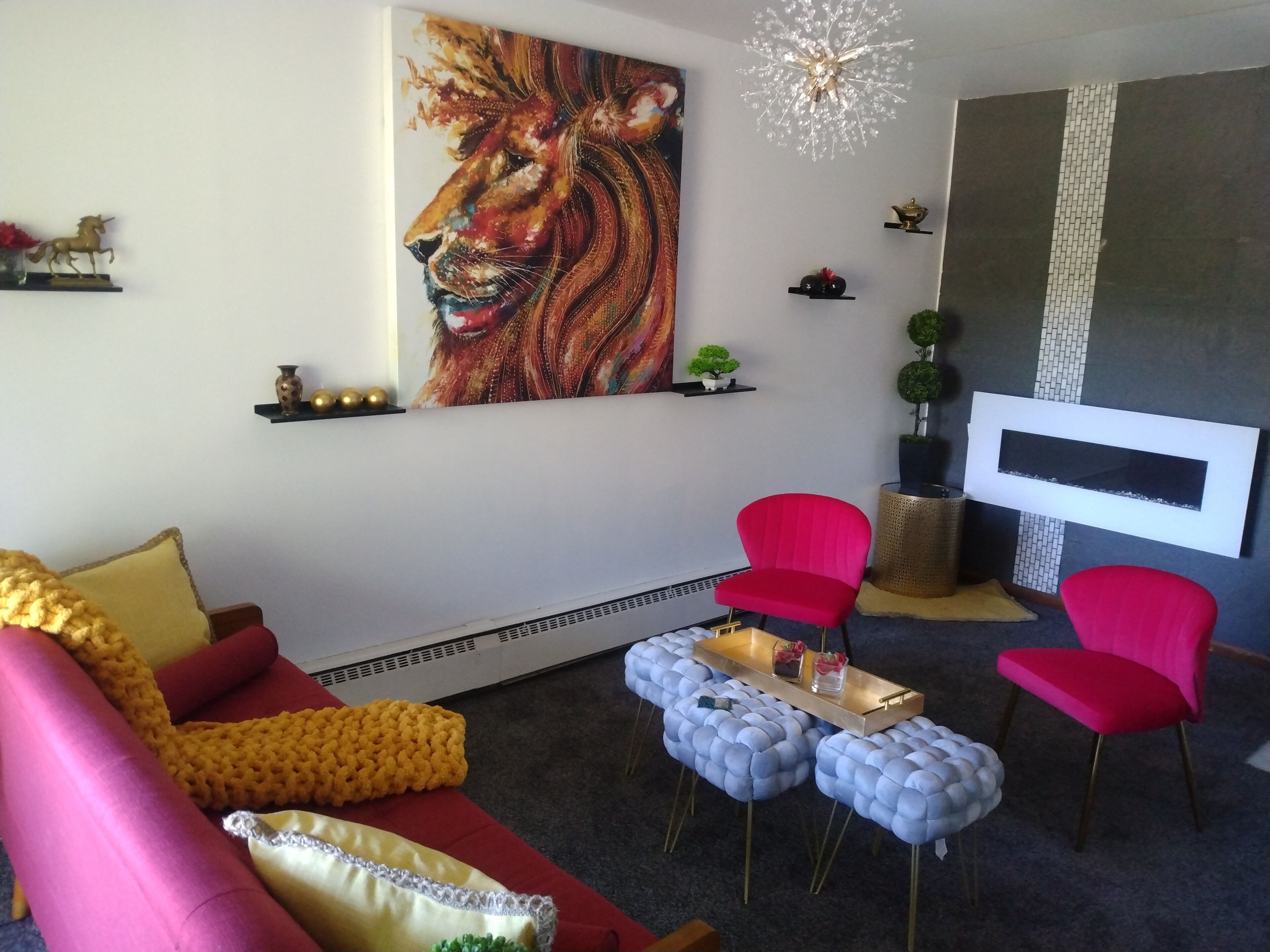 Relax and unwind in the cozy living room, where you can catch up on your favorite shows and movies on the Smart TVs provided in each room. Stay connected with high-speed WiFi, allowing you to work or stream effortlessly during your stay.