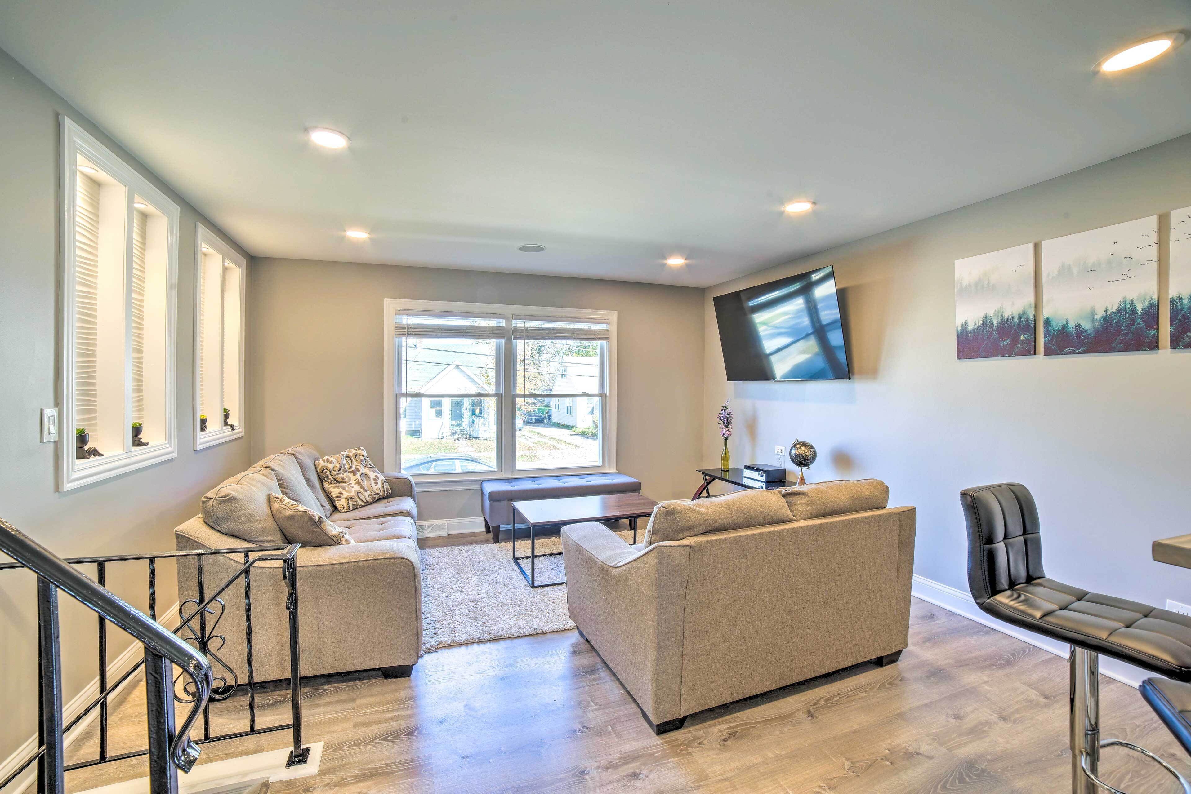 Centrally located between Chicago, Lake Michigan, and Indiana Dunes National Park, this Munster vacation rental offers the perfect home base. This bright and cozy condo features all the comforts and essentials, including 2 bedrooms, 1 full bathroom, a fully equipped kitchen, and more. Enjoy a movie on the Smart TV, and unwind by the electric fireplace. When you’re not snapping photos at the Bean or basking on the Lake Michigan shores, explore local hot spots like Centennial Park!