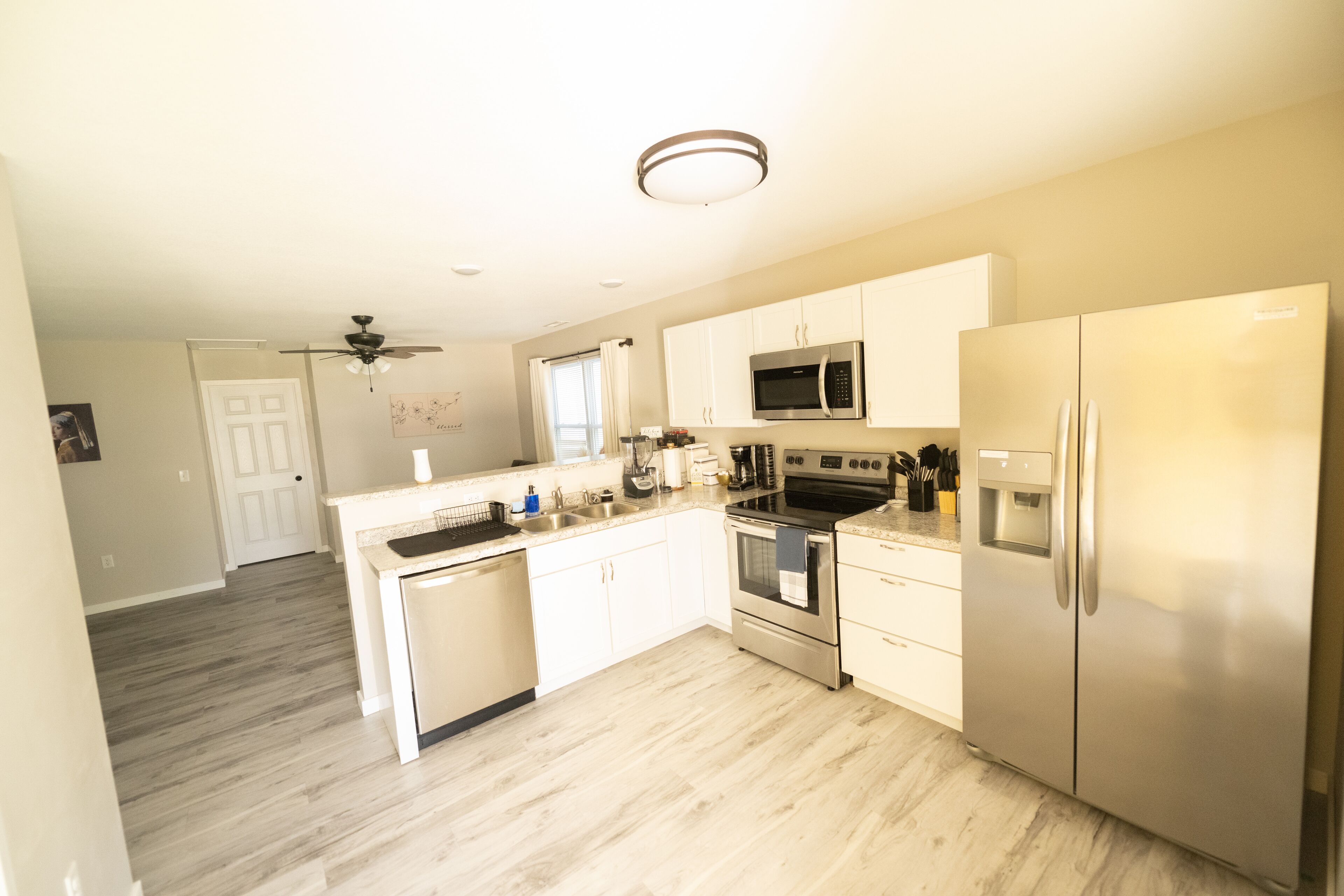 KITCHEN: Stainless steel appliances, cooking basics, dishware/flatware, dishwasher, stove/oven, refrigerator, microwave, Keurig coffee maker, toaster, blender, Crockpot, ice maker