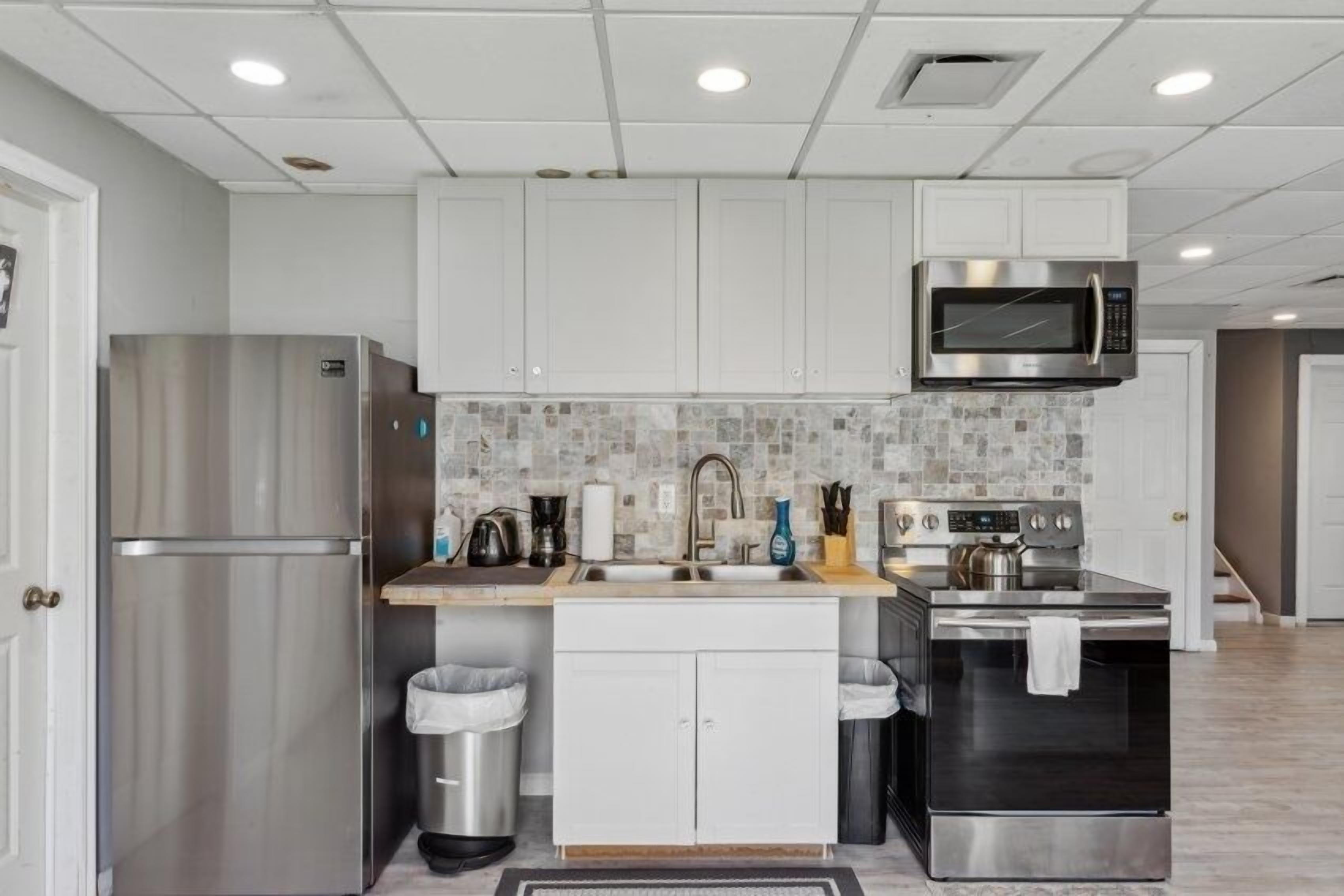 KITCHEN: Stainless steel appliances w/ dishwasher, cooking basics, dishware/flatware, coffee maker, microwave, toaster oven, air fryer