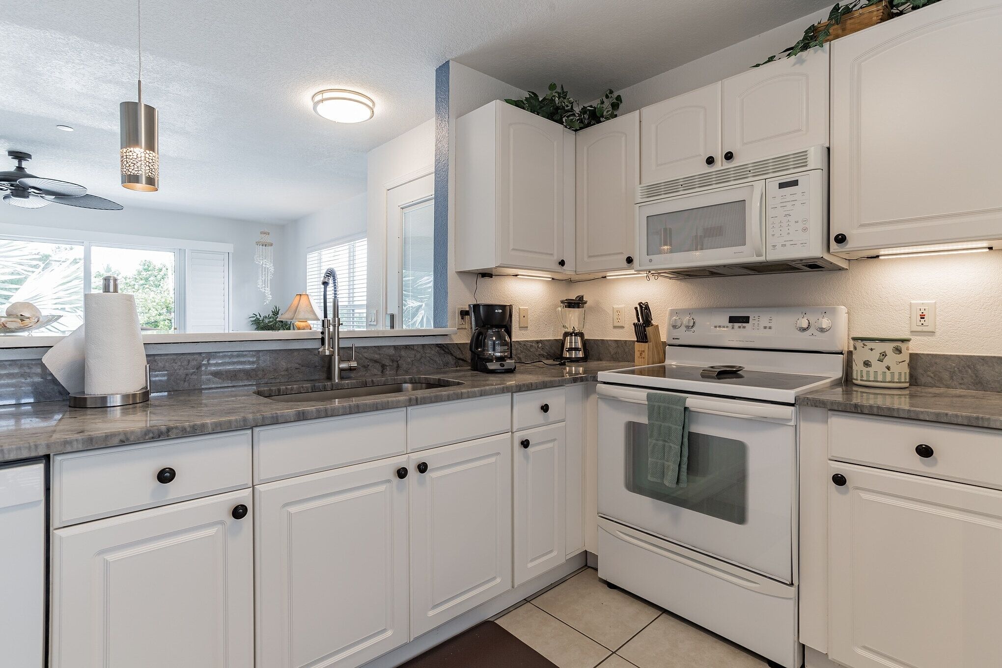 Nicely appointed unit with granite counters, stainless appliances and tile floors throughout.