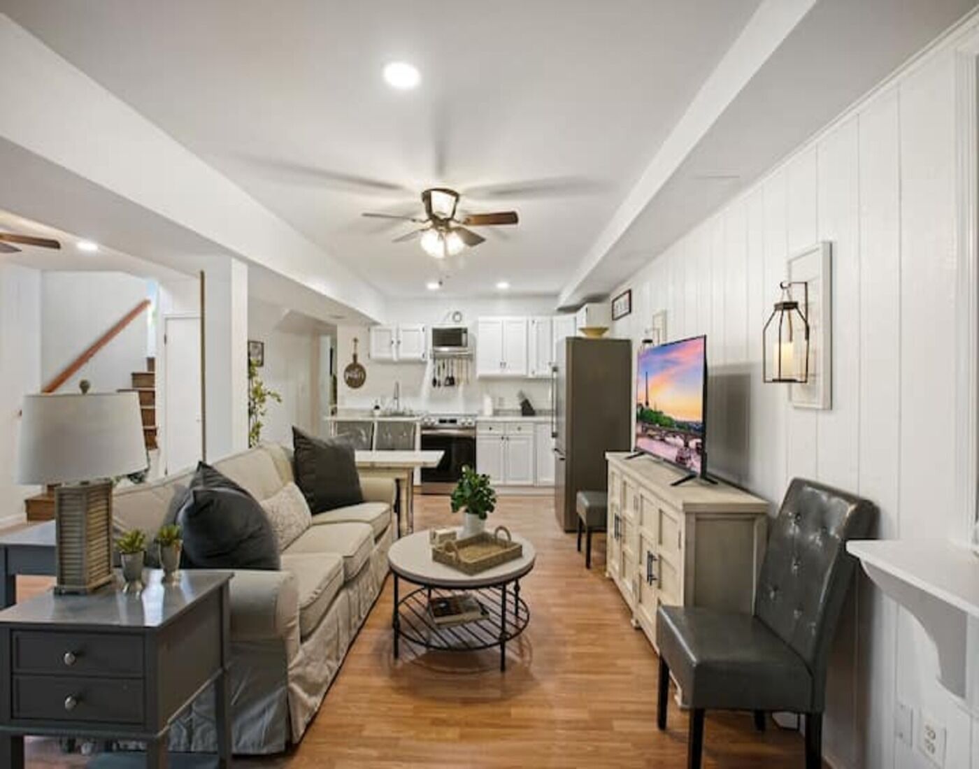 Modern 2BR apartment near downtown with easy access to Amtrak and VRE for DC commuters. Features full-size washer/dryer, off-street parking and fully fenced private backyard. Stylish furnishings, spacious living room, fully equipped kitchen, cozy bedrooms with storage, work space, and sleek bathroom. Book now for the perfect home base in the heart of the city.