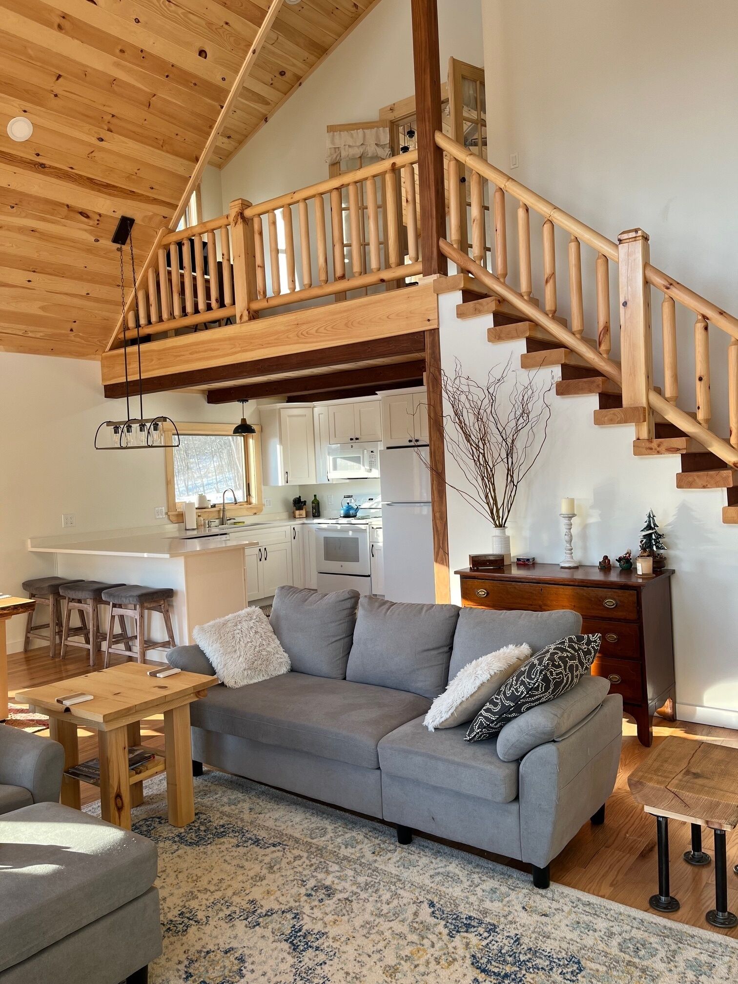 Bright Cozy Apt in the heart of Margaretville Village features a queen-sized bed in the cozy sleeping loft, the couches open to a twin size as well.