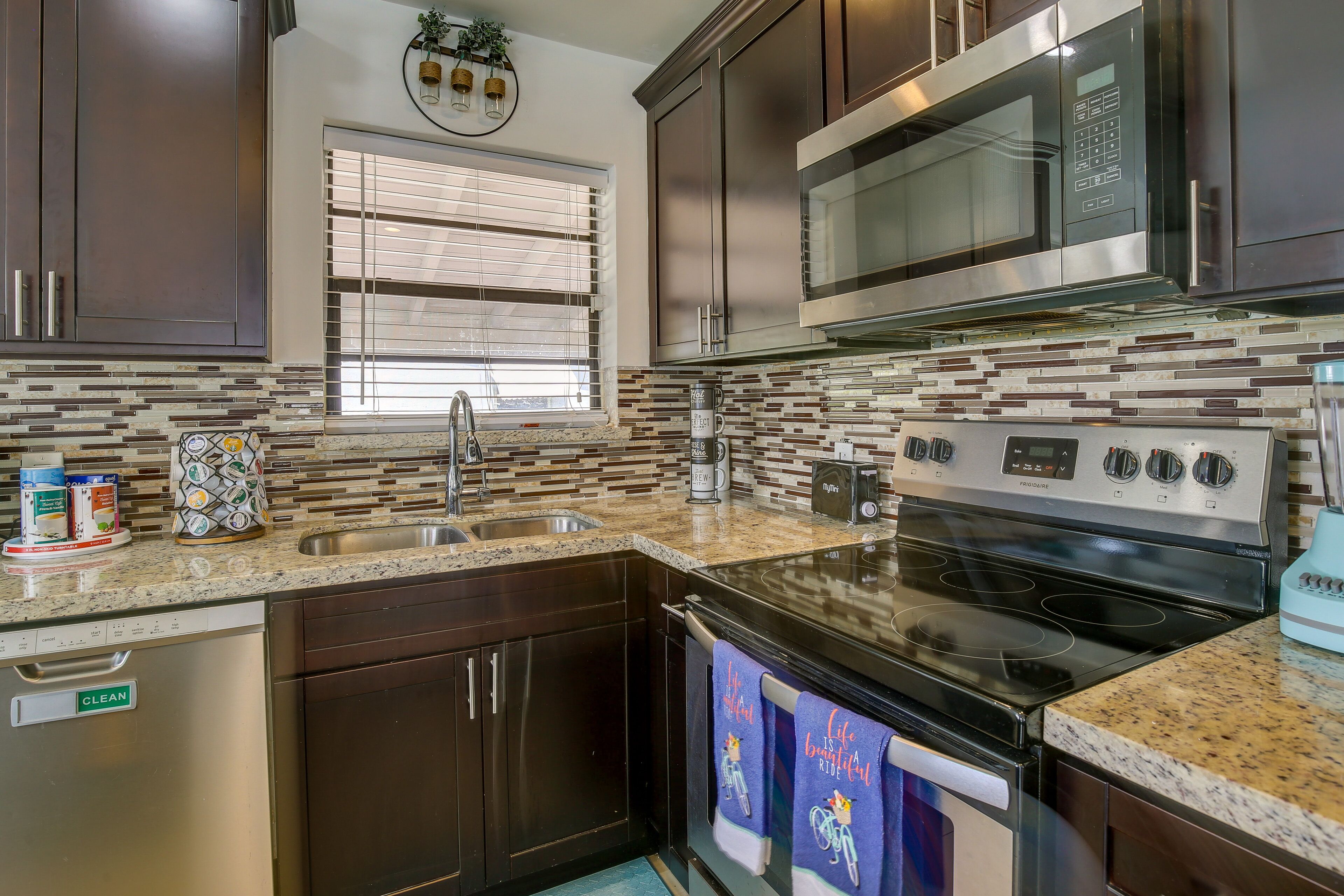 Make the most out of your Florida vacation at this tropical Margate home! Boasting a well-equipped kitchen, a private pool, and a screened porch, this 2-bedroom, 1-bathroom vacation rental is the perfect spot to relax while enjoying the East Florida coast. Hang with your furry friends in the fenced yard, sip a cold beverage by the pool, or dine al fresco with friends and family. If you’re looking for a scenic outdoor adventure, check out Fern Forest Nature Center located less than 4 miles away!