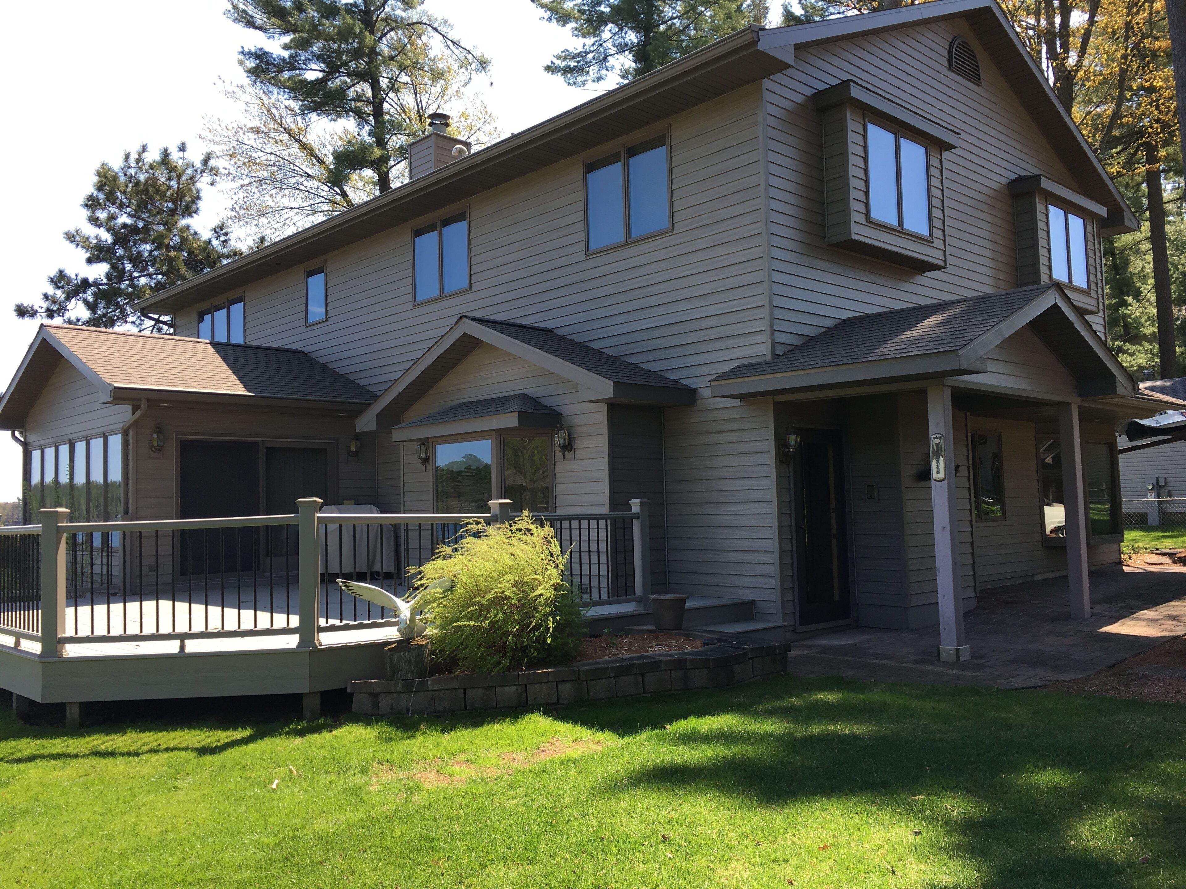 There are two taverns in the area that serve food. One with lake front access. Three lakes are connected for a total of 235 acres. There's a variety of fish including Muskie, Northern, Bass, Crappie, Bluegill and Sunfish. Our fire pit is by the water and firewood is provided. The large deck has a patio table for convenient outdoor dining.