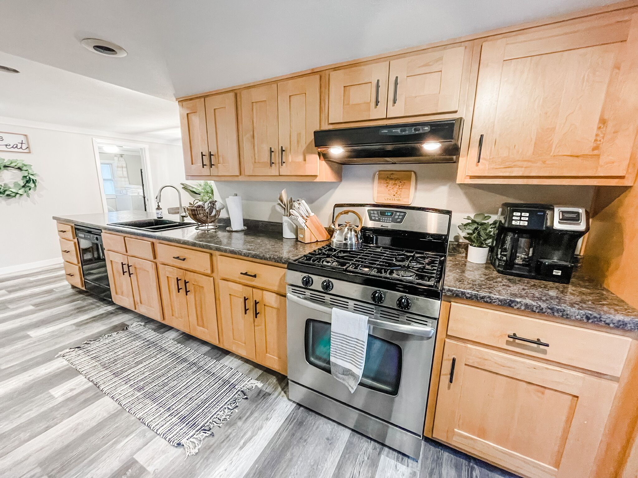 KITCHEN: Dishwasher, fridge, oven, 4-burner stovetop, microwave, breakfast nook, drip & Keurig coffee makers w/ complimentary coffee pods, blender, Crockpot, toaster, cooking basics, dishware & flatware