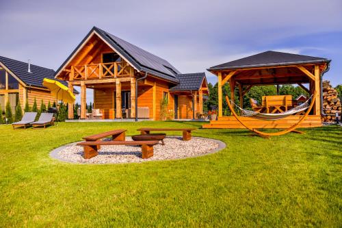Offering pool views, Bliżej Natury Stodoły, Domki na Mazurach in Świętajno offers accommodations, a private beach area, a seasonal outdoor swimming pool, and a garden. This beachfront property offers access to a terrace, free private parking, and free Wifi. On clear days, guests can head outside to enjoy the vacation home's outdoor fireplace, or simply kick back and relax. All units comprise a seating area with a sofa, a dining area, and a fully equipped kitchen with various cooking facilities, including a dishwasher, a fridge, a stovetop, and kitchenware. The vacation home features certain units with lake views, and each unit has a kettle. At the vacation home, the units are fitted with air conditioning and a private bathroom. Guests at the vacation home will be able to enjoy activities in and around Świętajno, like cycling and walking tours. Outdoor play equipment is also available for guests at Bliżej Natury Stodoły, Domki na Mazurach. Talki Golf Course is 21 miles from the accommodation, while Indian Village is 27 miles away. Olsztyn-Mazury Airport is 92 miles from the property.