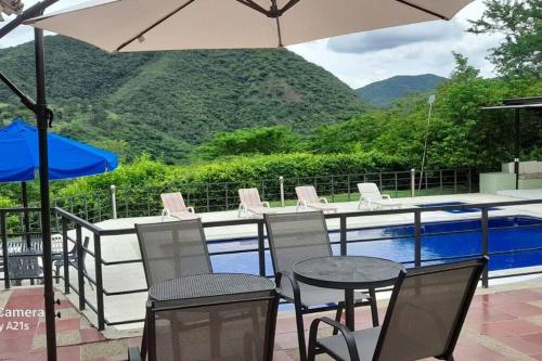 Offering a garden, Casa Quinta con piscina Girardot- Via el Peñón provides accommodations in Girardot. This property offers a private pool, free Wifi, and free private parking. Outdoor seating is also available at the vacation home. Leading onto a balcony with inner courtyard views, the spacious air-conditioned vacation home consists of 3 bedrooms. Providing a terrace with pool views, this vacation home also provides guests with a cable flat-screen TV, a well-equipped kitchen with an oven, a fridge, and a stovetop, as well as 3 bathrooms with a bath. For added privacy, the accommodation has a private entrance and is protected by full-day security. Piscilago is 15 miles from Casa Quinta con piscina Girardot- Via el Peñón. Perales Airport is 39 miles away.