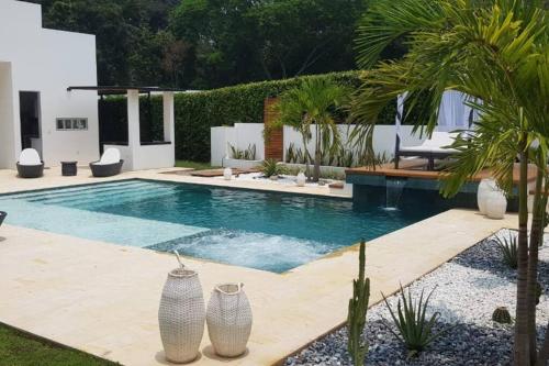 5.9 miles from Piscilago in Melgar, CASA QUINTA CON PISCINA PRIVADA en Melgar Tolima provides accommodations with access to an open-air bath. This property offers a private pool, free Wifi, and free private parking. The property features barbecue facilities and outdoor furniture. Featuring pool and garden views, this recently renovated villa offers 5 bedrooms and opens to a patio. Offering a terrace with mountain views, this villa also has a cable flat-screen TV, a well-equipped kitchen with an oven, a fridge, and a stovetop, as well as 4 bathrooms with a walk-in shower. For added privacy, the accommodation has a private entrance and is protected by full-day security. Guests can relax in the garden at the property. Perales Airport is 51 miles away.