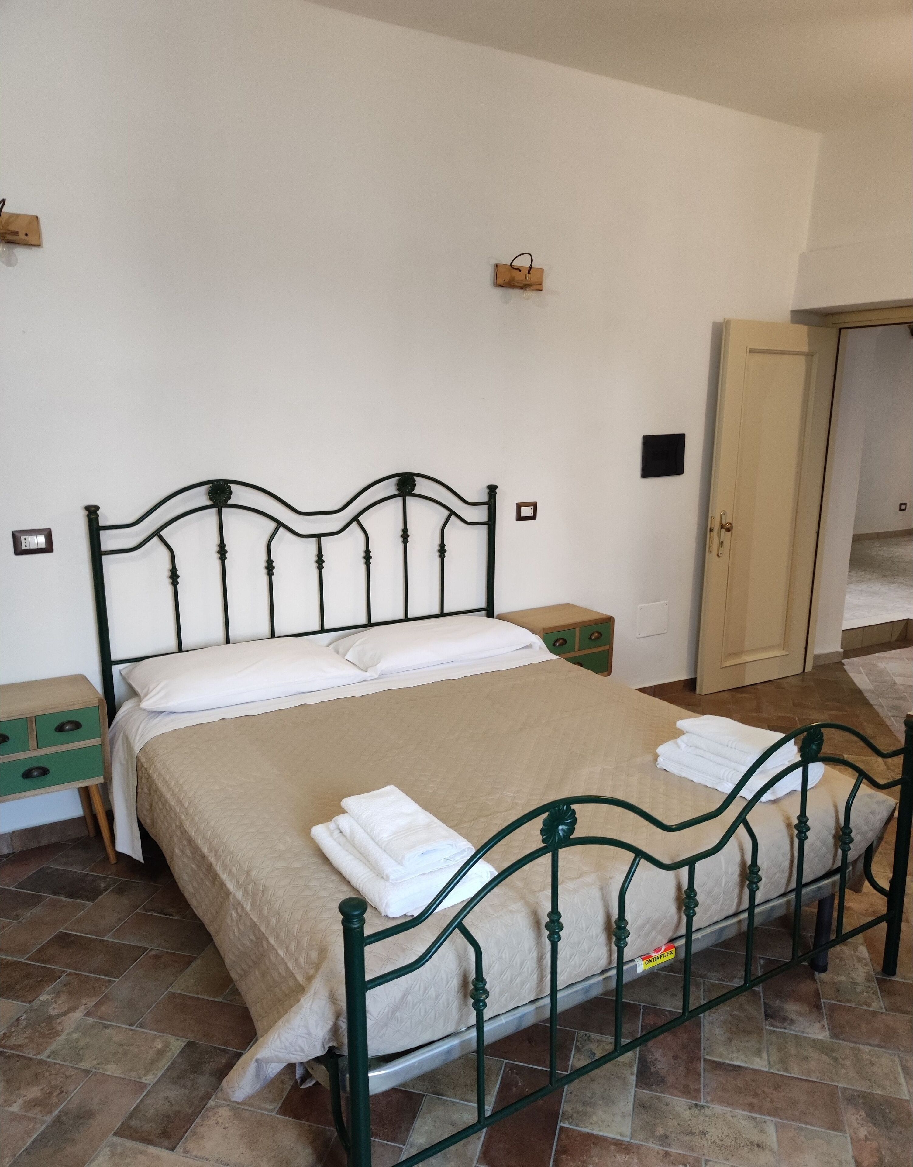 Apartment of 150 square meters c. to. located on the first floor in a splendid old farmhouse and former convent of Paolotti monks immersed in the Cirò countryside amidst vineyards and ancient olive trees, located just outside the town and 5 km from the sea, consisting of two bedrooms, a fully equipped kitchen with a living room, an island with plasma TV, fireplace, two bathrooms with shower, entrance hall, wi-fi, large terrace and balcony. Parking space included and independent entrance.