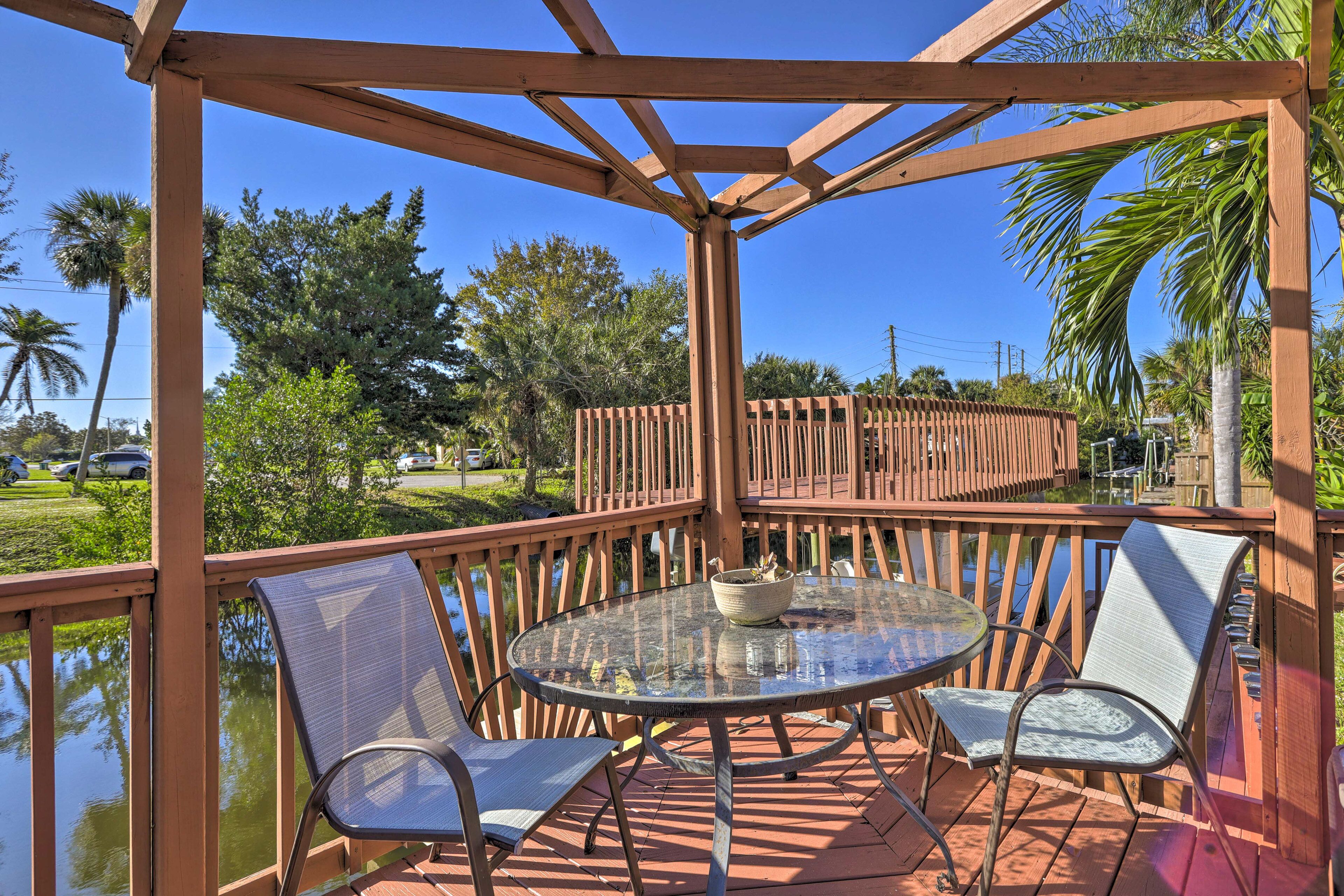 Waterfront Merritt Island Vacation Rental with Pool! is located in Merritt Island, just 5.1 miles from United States Coast Guard Station Port Canaveral Wharf and 6 miles from Port Canaveral. This vacation home features air-conditioned accommodations with a patio and free Wifi. TreeTop Trek is 17 miles away and Brevard Museum Of Art And Science Foosner Education Center is 23 miles from the vacation home. Featuring a terrace and river views, the spacious vacation home includes 2 bedrooms, a living room, flat-screen TV, an equipped kitchen, and 2 bathrooms with a shower. Towels and bed linen are available in the vacation home. The property has an outdoor dining area. Guests can enjoy the outdoor swimming pool and garden at the vacation home. Brevard Museum of Art and Science is 24 miles from Waterfront Merritt Island Vacation Rental with Pool!, while Sea Turtle Preservation Society Melbourne Beach is 25 miles from the property. Melbourne International Airport is 25 miles away.