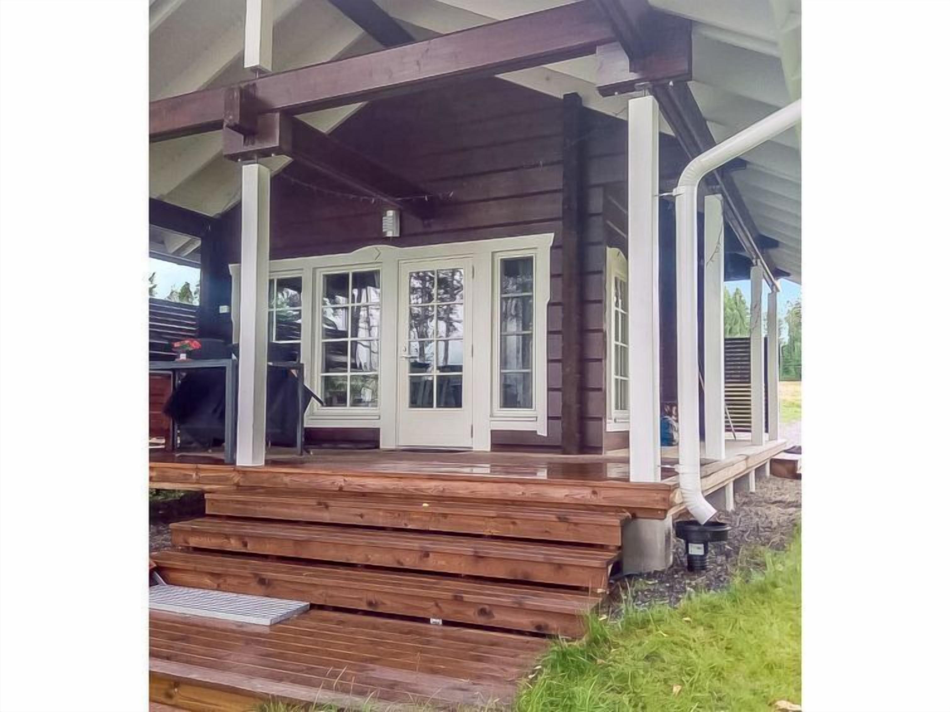 Wooden cottage 1980, renovated in 2021, living room/ kitchen convertible sofa for 2 persons, 2 bedrooms; one with double bed, another with bunk bed. Sauna (wood stove) and washroom, toilet, covered porch.