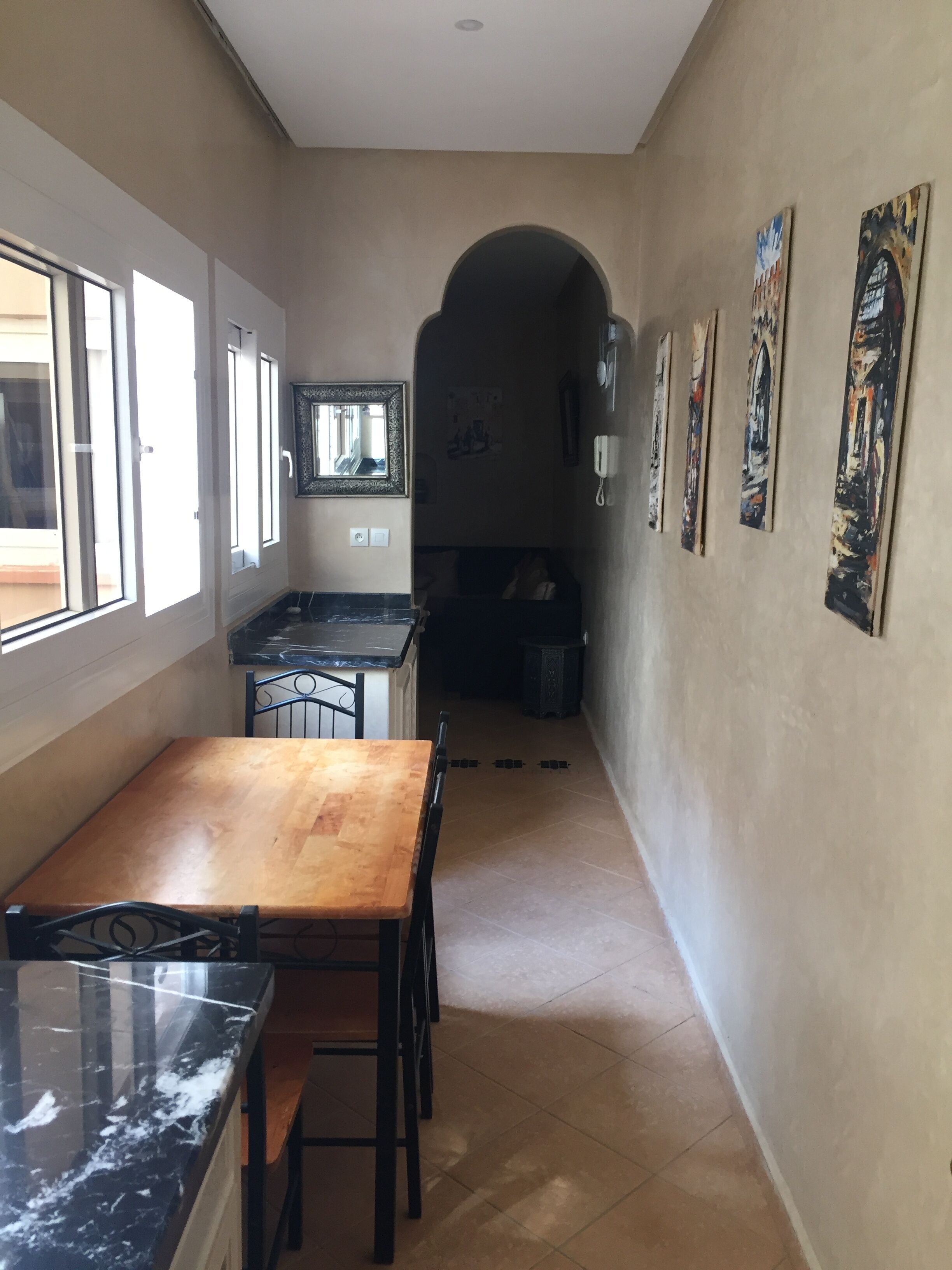 Large apartment very close to beach in Mirleft in southern Morocco which contains two suites two lounges one to the apartment and another to the terrace, with flat TV, fiber optic wifi well equipped and bathrooms Moroccan traditional style orientation is South south total area is 86 square meter.