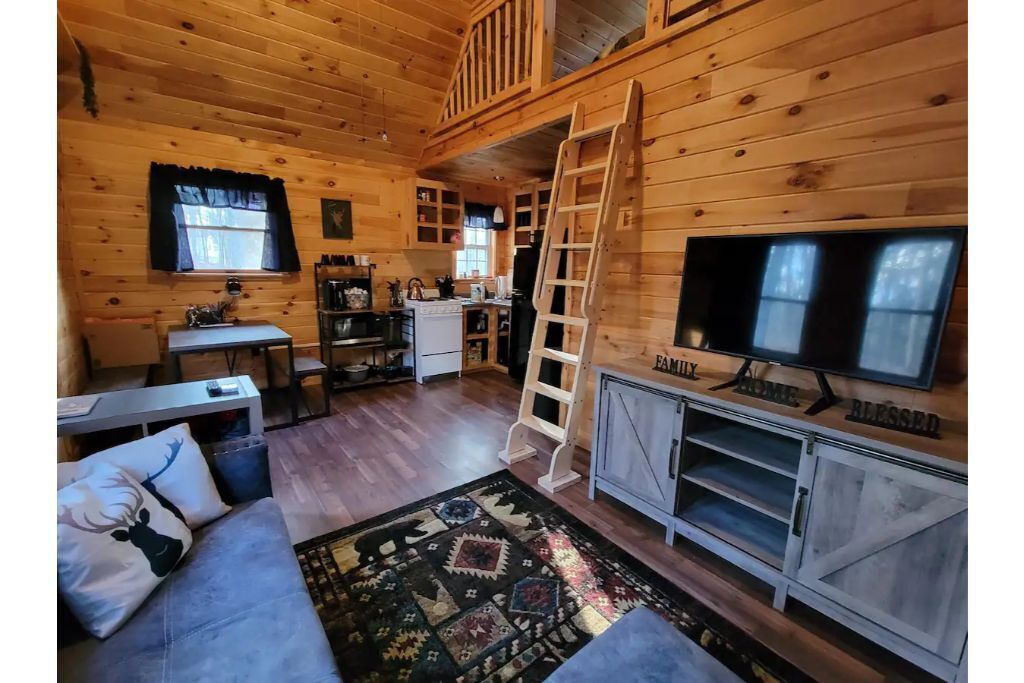 The cabin is fully equipped with everything you need for a comfortable stay, including a well-stocked kitchen, gas fireplace, and entertainment options like Netflix and board games. With flexible sleeping arrangements—including a queen bed, double bed, and bunk beds—it’s ideal for families or small groups looking to create lasting memories.