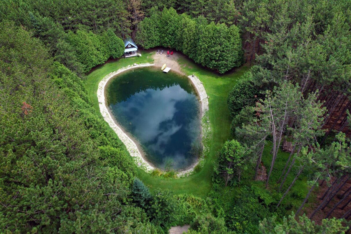 This cozy cabin in the woods is perfect for content creation, photography, proposals or just enjoying nature and swimming in the summer or ice skating throughout the winter.
