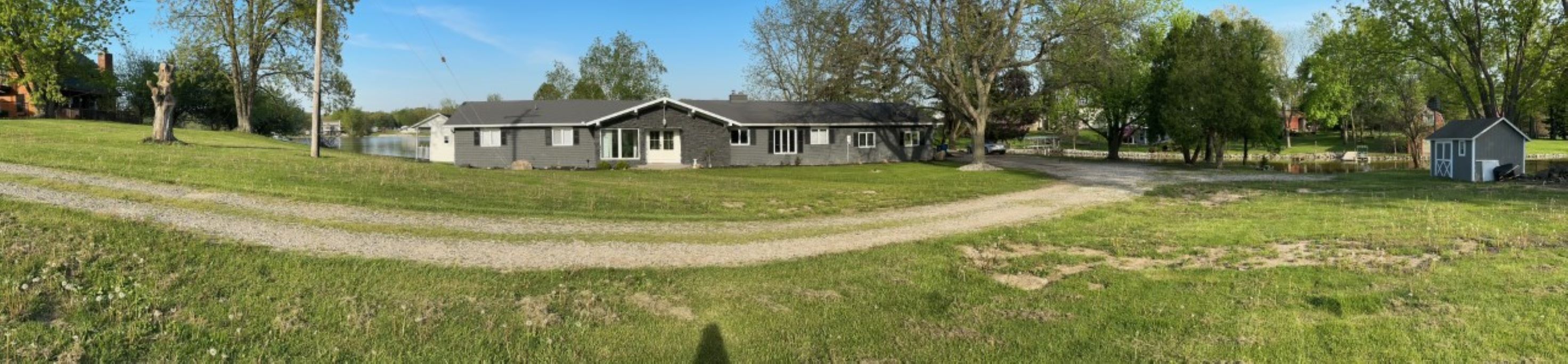 Large single-story home on four lake lots with 540' lake frontage sitting on corner with water on two sides of property! Lake Diane is an all-sports lake.