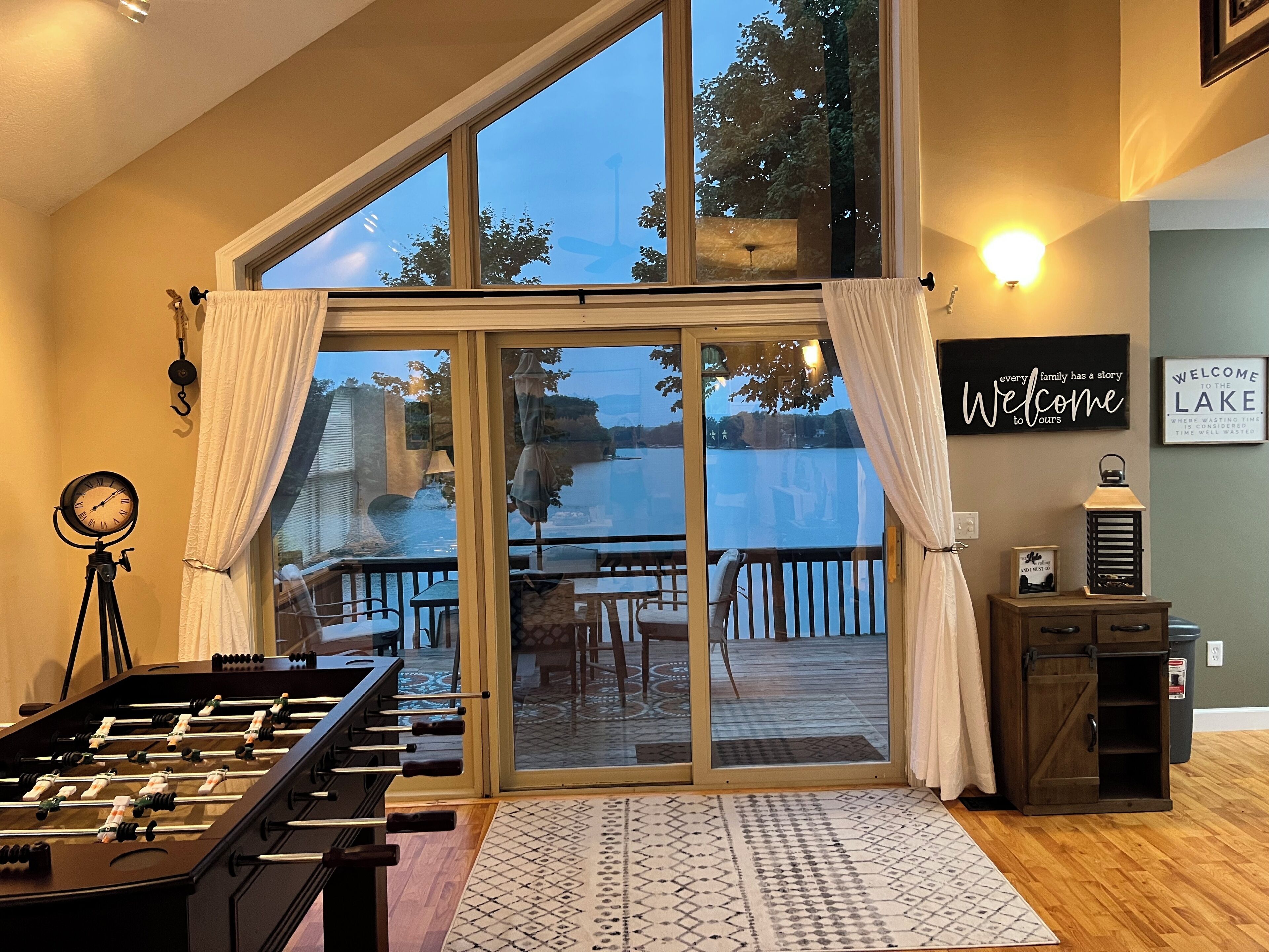 Step outside onto the large deck, where you can enjoy stunning lake views—perfect for morning coffee, evening relaxation, or simply soaking in the peaceful surroundings.
