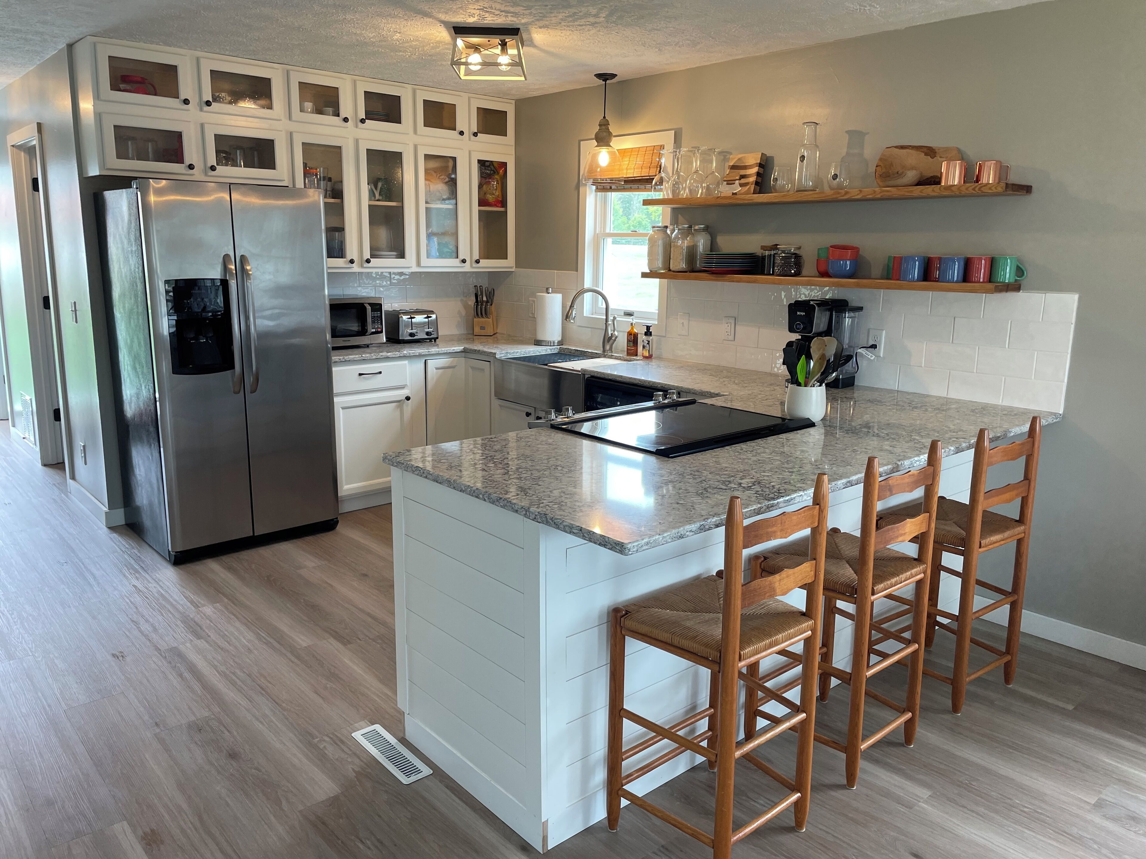 Kitchen: fully stocked with stove, oven, microwave, crockpot, toaster ,and coffee maker with Keurig maker. Bar top that seats 4.