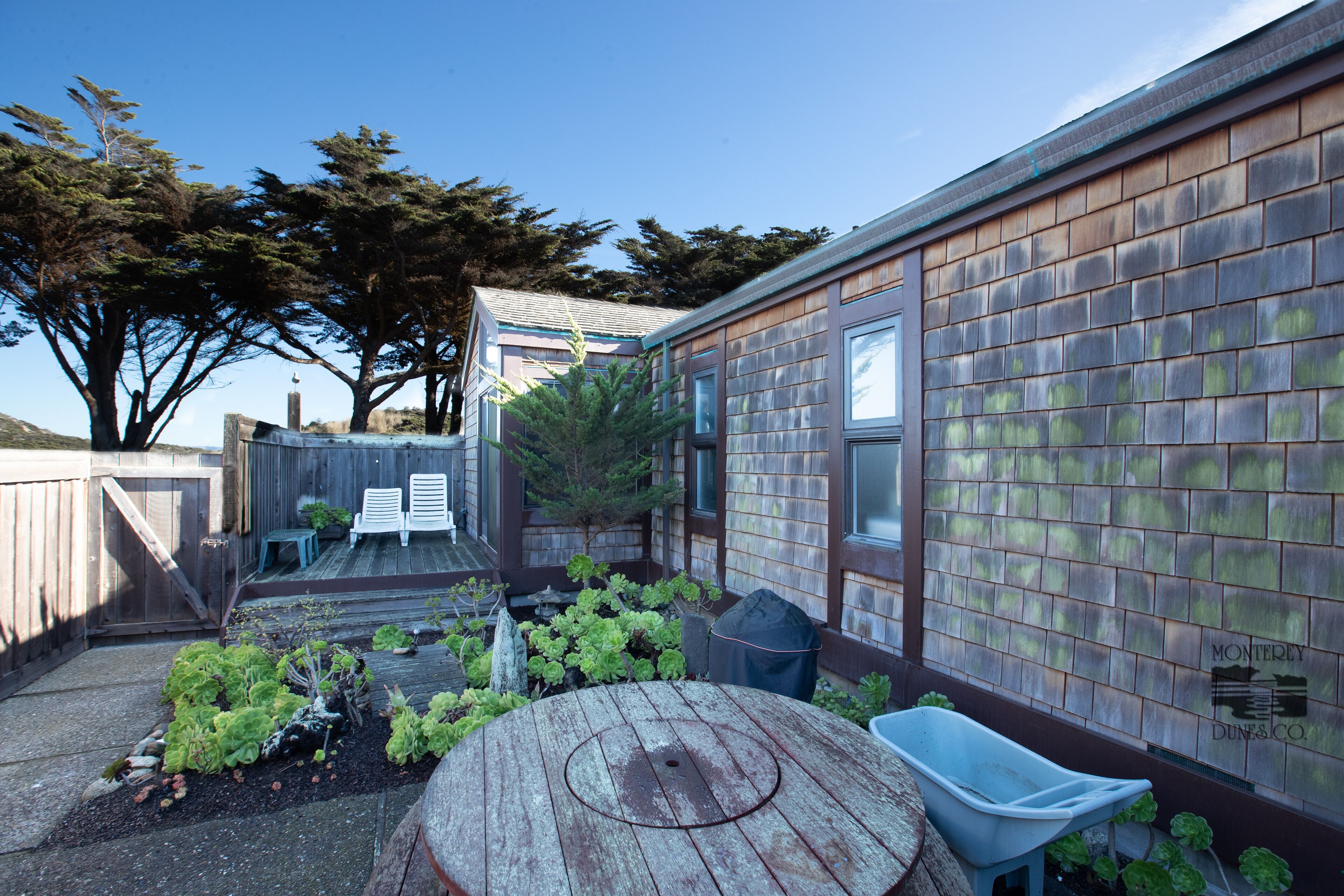 When the wind kicks up, the enclosed front courtyard is a bit more protected and is another pleasant space to spend time or to fire up the propane BBQ grill.