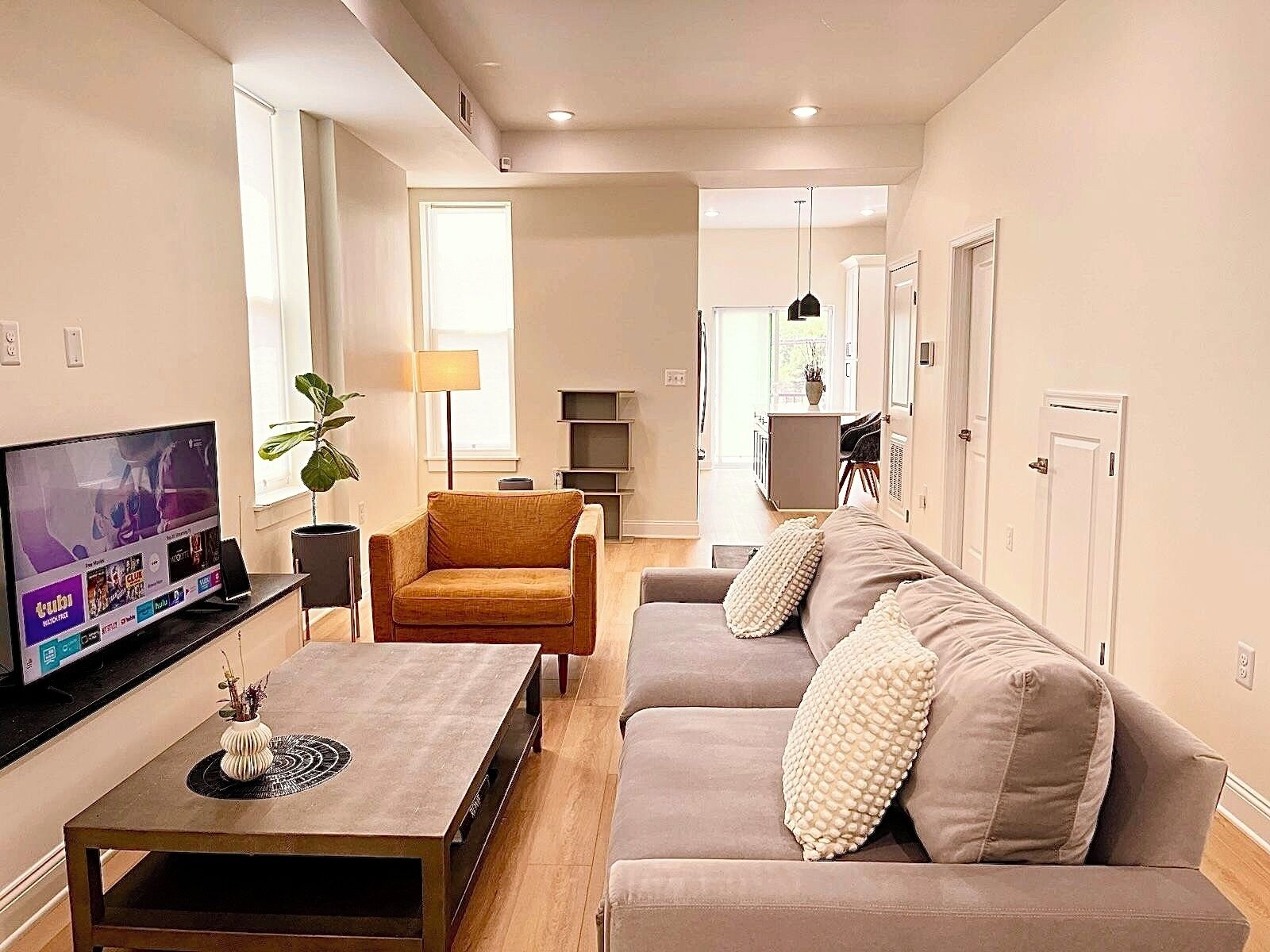 This space is in the lower level of a beautiful corner row home and features a Queen sized bed, walk-in closet, a full kitchen with dining nook, and a comfortable living area with a TV. There's an Amazon Firestick for streaming all your favorite shows, and of course great Wifi for those who need to do some work during their stay. The bathroom includes a walk-in shower with glass doors, and has been recently renovated. You will also have access to a washer and dryer, for your convenience. This spot is an ideal home-away-from-home for those traveling on business, or planning jam-packed days for sightseeing and attending events.