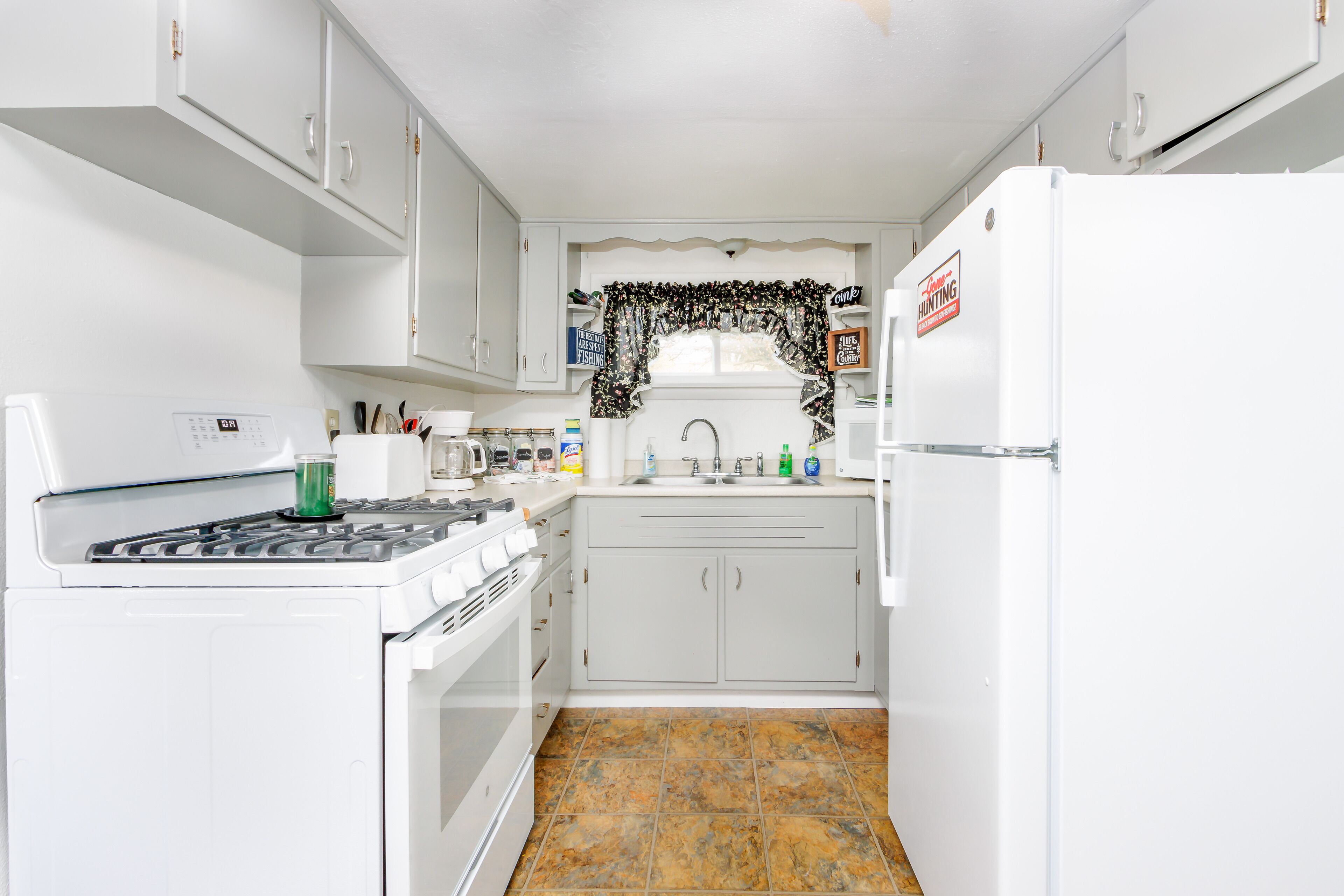 KITCHEN: Refrigerator, microwave, stove/oven, coffee maker, blender, spices, toaster, cooking basics, dishware/flatware