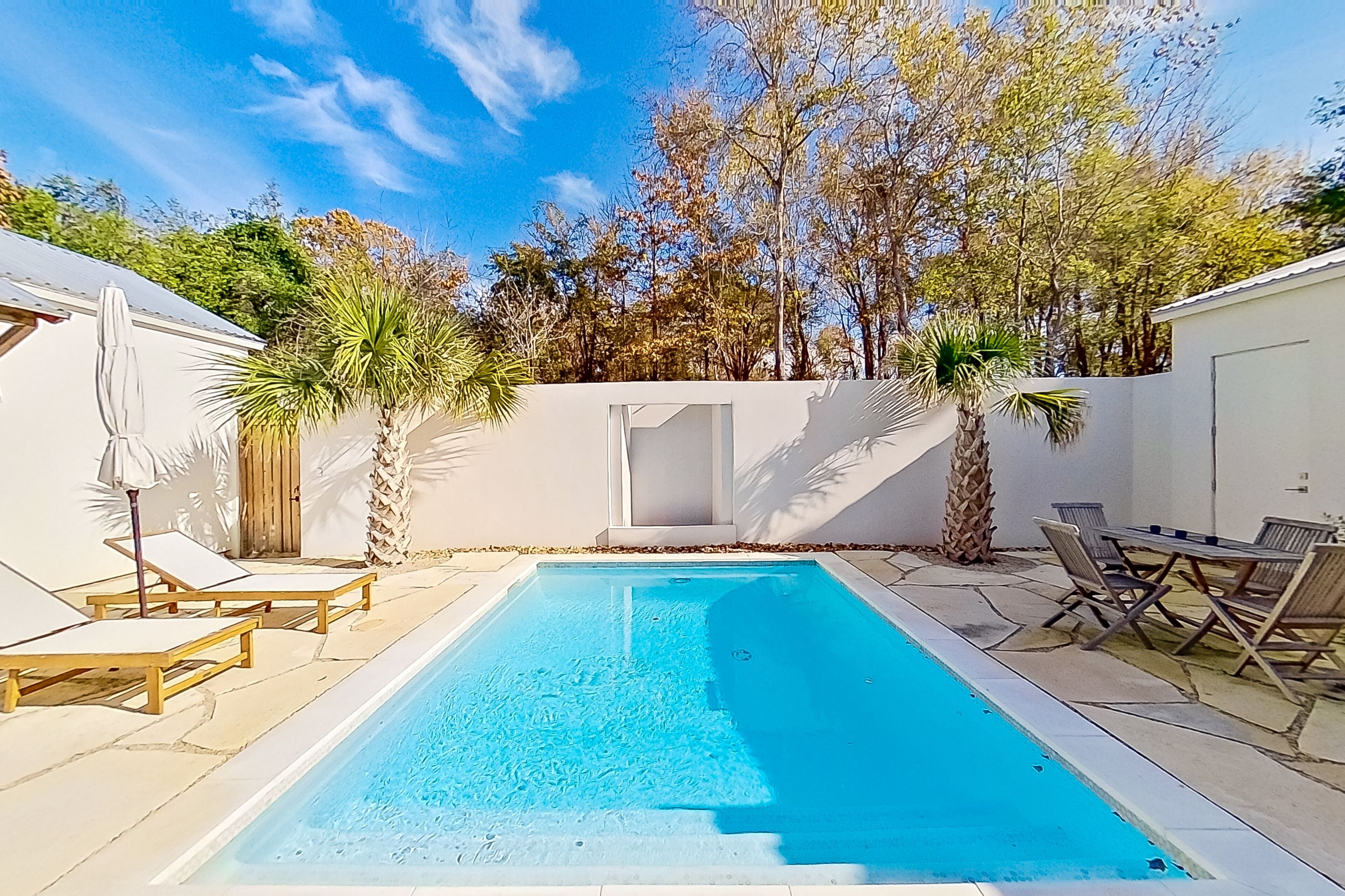 This upscale escape features a private pool 💦, an expansive courtyard for al fresco dining 🍽️, and a rare indoor/outdoor shower 🚿 in the primary suite for a truly indulgent experience.