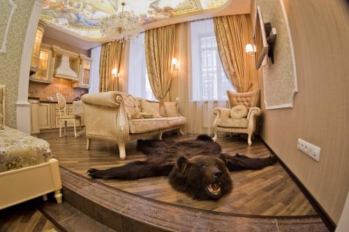 Located in the city centre of Nizhniy Novgorod, a 5-minute walk from the Nizhniy Novgorod Kremlin, Hotel U Domika Petra features an on-site café, free Wi-Fi access throughout the property, and free private parking. The rooms here are equipped with a TV with satellite channels, air conditioning, a seating area with a sofa, a refrigerator, and a private bathroom with a bath or shower. Other available facilities include a 24-hour front desk, meeting or banquet facilities, luggage storage, and a garden. Minina Square is a 10-minute walk away, Ulista Dobrolyubova tram stop is a 2-minute walk, Nizhniy Novgorod Train Station is 4 km away, and Nizhniy Novgorod Airport is 23 km from the property.
