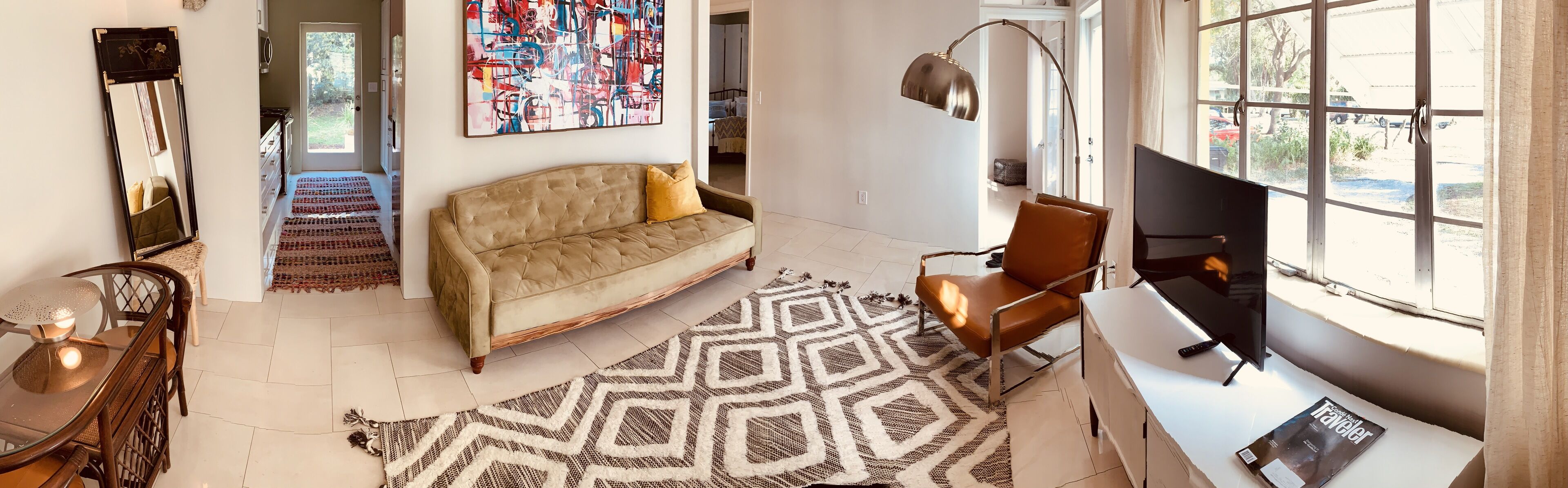 Immaculate artistic vintage modern boho home with a serene and comfortable vibe, part of a duplex house in a quiet section of North Miami, conveniently located to the beach, marina, MIA and Ft Lauderdale airports. Located in walking distance to Downtown North Miami and MOCA museum, cafes, shops, Oleta State Park(5 min drive) and public transportation. You will unwind and recharge in this inspirational house with a huge back yard, oak, palm and tropical fruit trees featuring a paved patio/deck.
