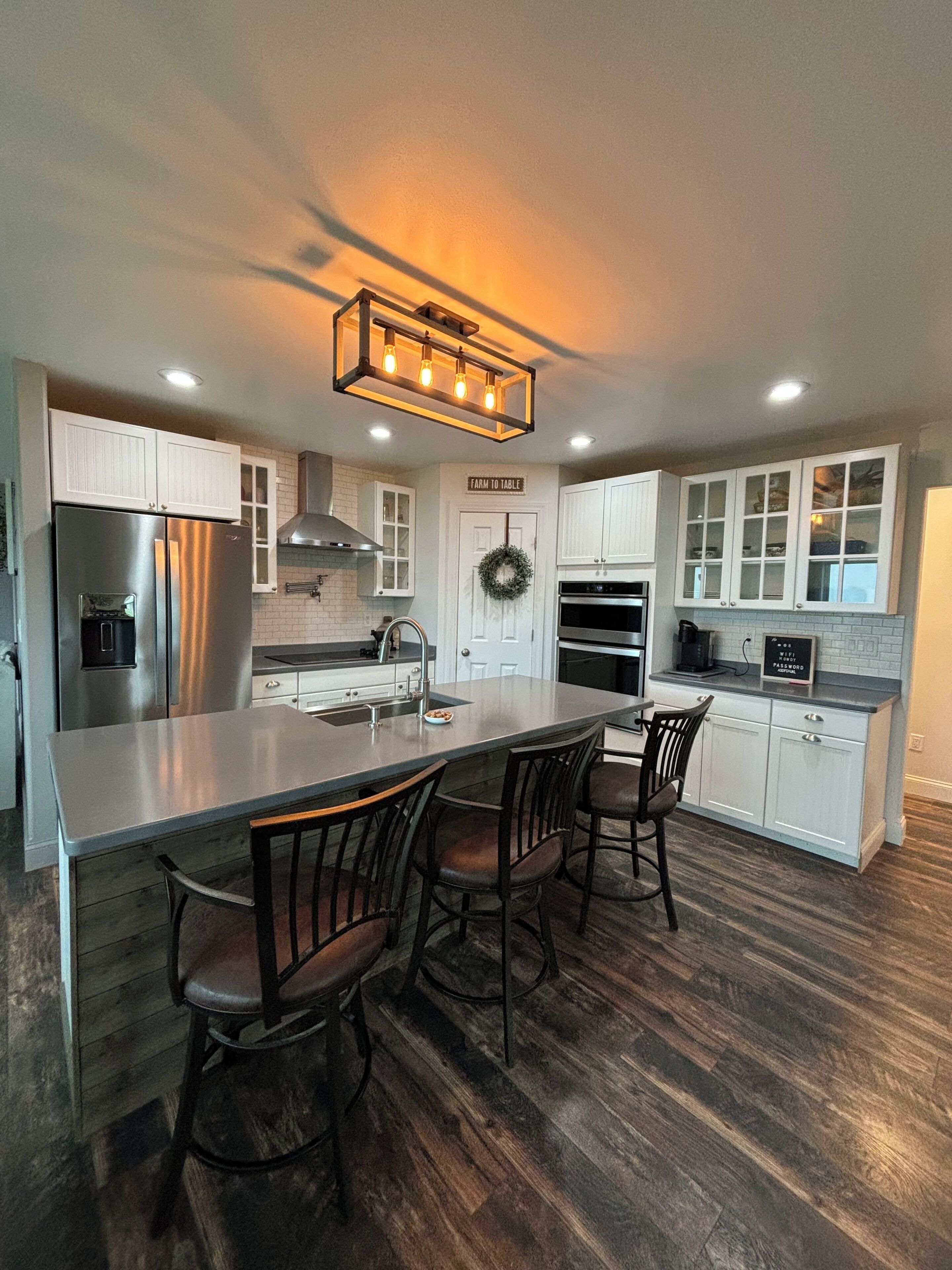 Eat-in Kitchen with dining table for 4, Stove/Oven, Refrigerator, Microwave, Cookware, Dishes, Silverware, Keurig, Toaster, Crockpot, Trash Bags and Paper Towels