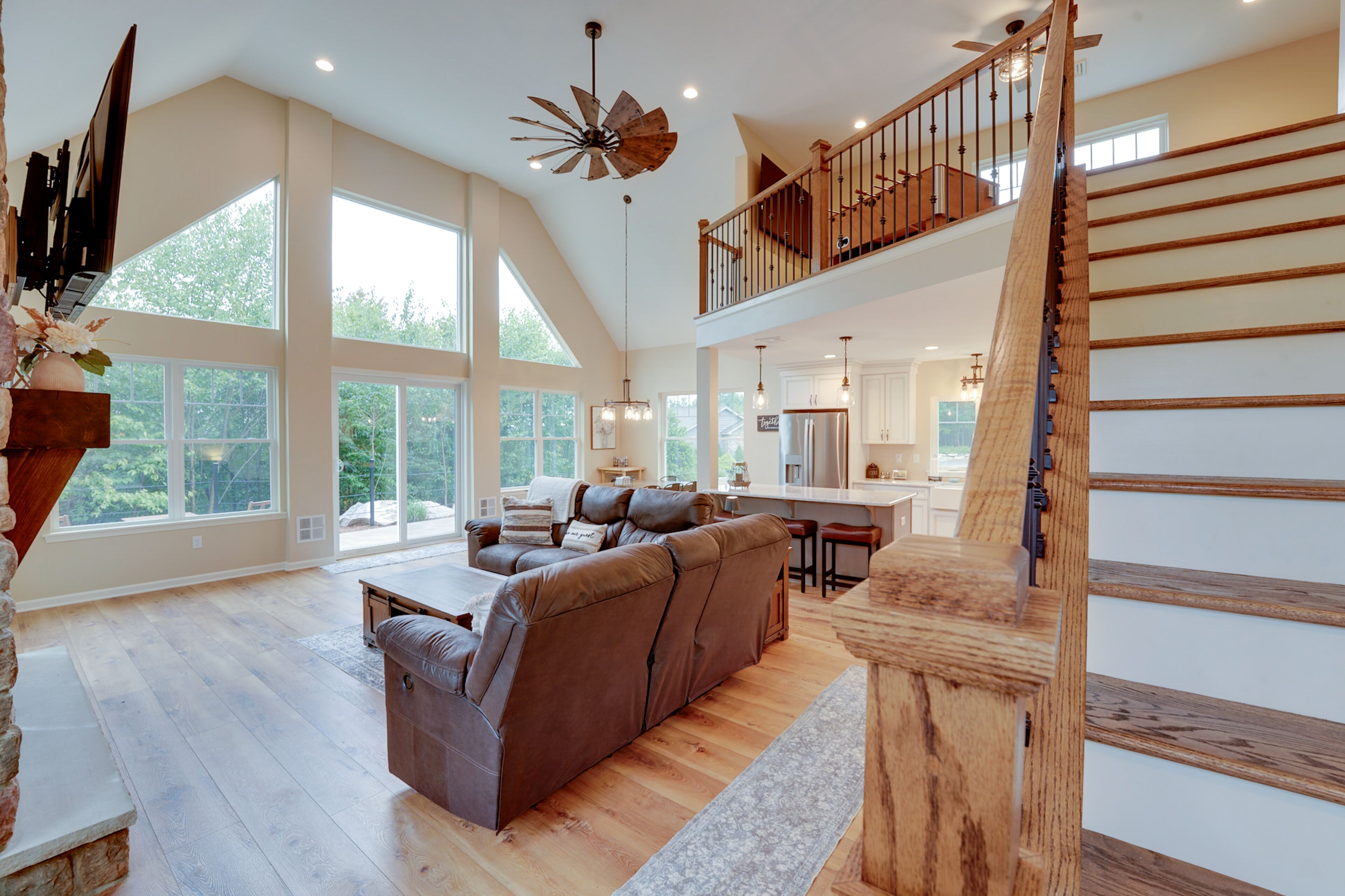 INDOOR LIVING: 5 cable TVs, DVD players, memory foam mattresses, knotty pine cathedral ceilings