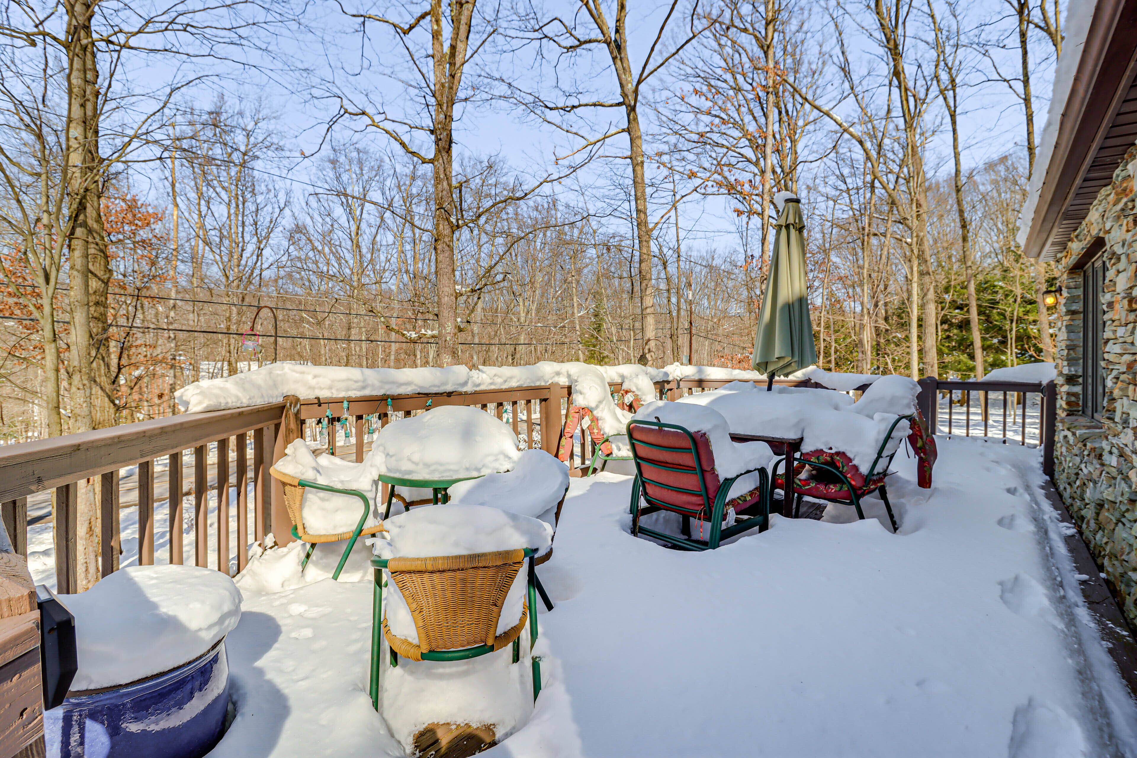Immerse yourself in Pennsylvania's year-round natural beauty at this 3-bed, 2-bath vacation rental in the gated Eagle Rock Resort! Along with its peaceful location, the home features everything you need for a family retreat, including a full kitchen, a spacious deck, and a fire pit.
