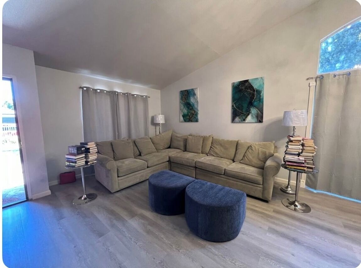 Home was completely remodeled in 2021 from the ground up with all new appliances and amenities. Enjoy a nice sunny day in the front porch or the back patio area complete with a grass area and garden plus ambiance lighting. Bedrooms are spacious and ideal for mid to long term stays.