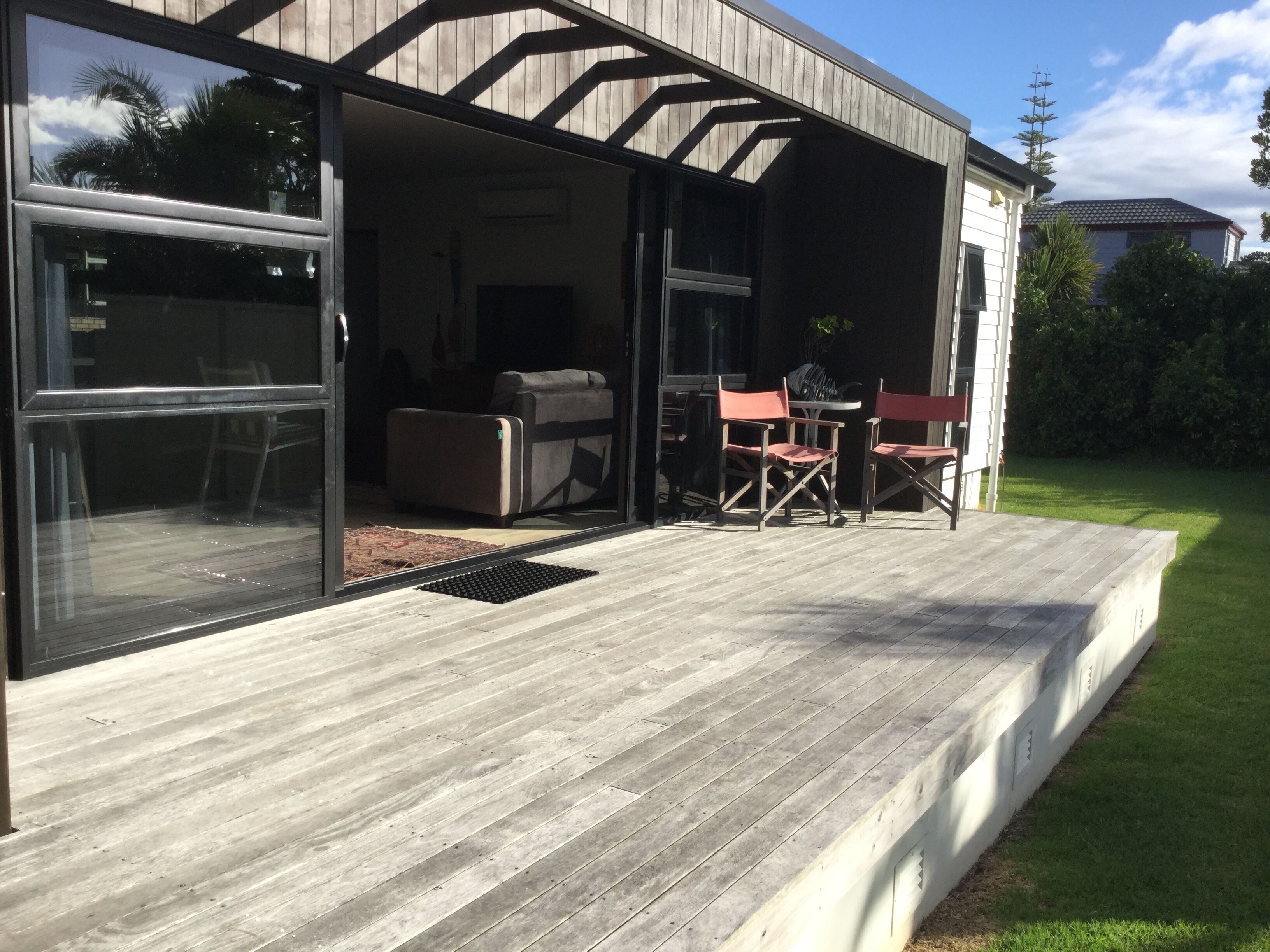 The Bach is fully fenced and has a waterproof area on the large sun deck so you can enjoy the space and bbq in all weathers.