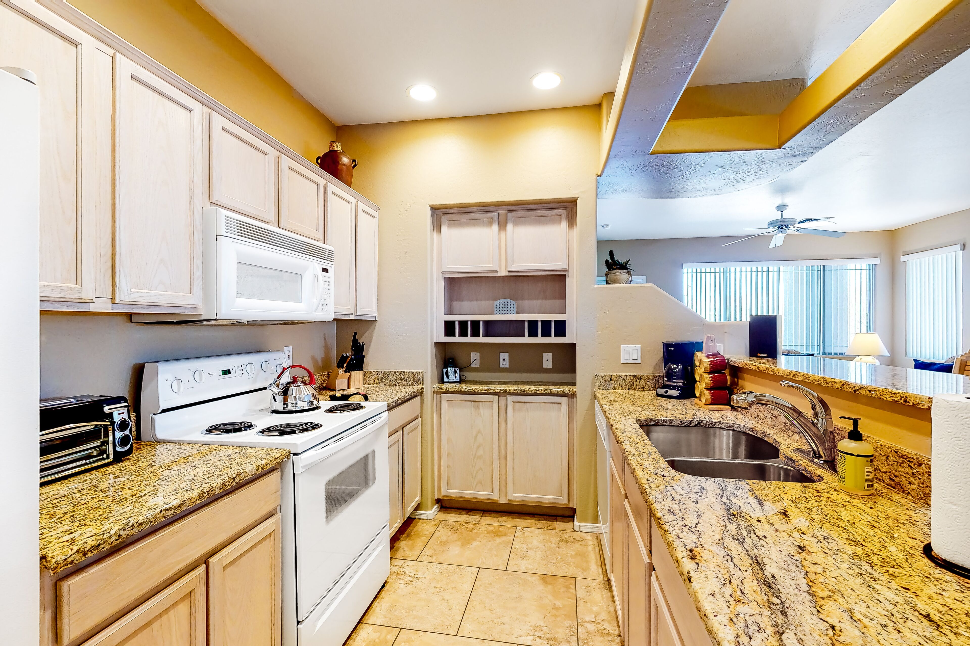- "The condo was very well-kept, very clean, and the hosts were very professional. We were moving my father-in-law to Arizona from California while he was purchasing his new home and this was the perfect place all the way around. All the amenities you want and very easy to get in and out of." - "Certainly one of our best VRBO experiences. Loved it!" - "Nicely furnished, kitchen stocked well, clean. Unit was close to the pool yet private patio relaxing and shaded."