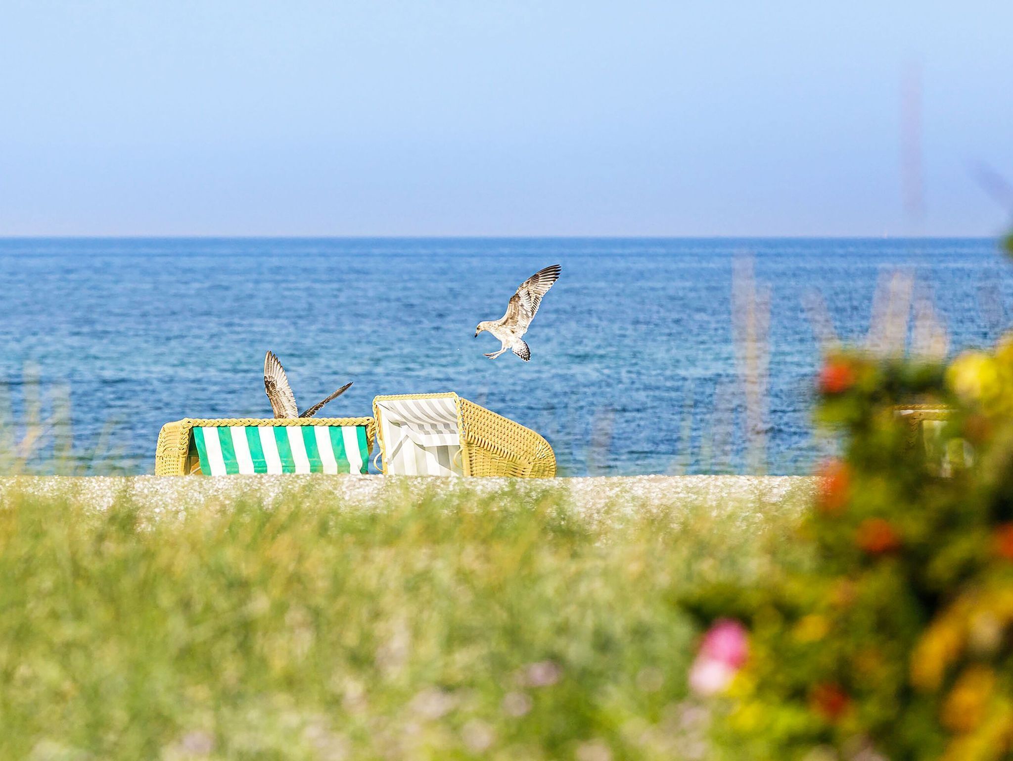 Wustrow is a Baltic Sea resort that promises relaxation in a variety of ways. During the day the Baltic Sea attracts with a fine sandy beach and in the evening with unforgettable sunsets. Or enjoy the nature on the Bodden side. There is a unique landscape with meadows and extensive reed beds. Enjoy your vacation in the modern Wiesenkieker apartment, furnished in a beach house style. Experience relaxing days between the Baltic Sea and Bodden. This non-smoking holiday apartment is located on the ground floor of the listed main building of the newly built holiday complex Zwei Wasser - Seefahrtschule in the Baltic Sea resort of Wustrow. The building of the Maritime School was built between 1847 and 1849 and was used as a home for navigation lessons. Until 1992 it was a school building for seafaring in several variations, lovingly restored in recent years and reopened in 2020. Start your day with breakfast and a cup of coffee on the terrace when the sun is rising. You can access the furnished terrace from the living room and the bedroom. The terrace has various lounging and seating options. The high ceilings of the apartment created there underline the friendly and spacious character. The apartment, which is kept in the style of a beach house, offers maximum comfort with selected accessories and harmonious compositions. The light-flooded holiday apartment with 74 m² offers space for 4 people. Here you can spend an unforgettable vacation at any time of the year. The open, fully equipped NOLTE fitted kitchen borders the living area and has built-in electrical appliances such as an induction cooker, an oven, a dishwasher, a fridge-freezer and a microwave. Numerous cooking utensils ensure the perfect cooking evening. The dining table with 4 chairs offers space for a dinner with friends or family. The living area is equipped with a sofa bed (extra bed for 2 people possible) and an armchair and invites you to share moments. A hi-fi system and a flat-screen TV (50 inches) provide entertainment in the living room. Of course, free WiFi is available in all areas. The two bright bedrooms are modernly equipped. The comfortable box spring beds with a mattress size of 180 cm x 200 cm invite you to dream. The interior master bedroom is equipped with a wardrobe and 2 bedside tables with bedside lamps, which can be reached via the living room. The large bedroom from which you can start the day on the terrace in the morning has a wardrobe, two bedside tables with bedside lamps and a small table with a shell chair. A 32-inch flat-screen TV provides additional entertainment in both bedrooms. The two bathrooms impress with a walk-in shower, a toilet and a vanity with a base cabinet. A cosmetic mirror and a hair dryer are small details that are included in the bathroom. A washer dryer is available in the adjacent storage room. A carport parking space can be booked for your apartment. The beach of the beautiful Baltic Sea is only 600 m away. There you can relax and enjoy long walks. A bicycle storage room is available for our cyclists directly at the house. There are several shops within a few meters. It is only a short walk to the in-house fitness and wellness area. This is also located in the main house and is available to you. In the fitness room with modern sports equipment, you have the opportunity to keep fit even on vacation. You can then relax in one of the two saunas with a sensory shower and in the relaxation room. The rental office, the snack machine and the bread service are located together with the apartment in the main building. Please note that these are visualized pictures of the apartment, as the property is still being completed.