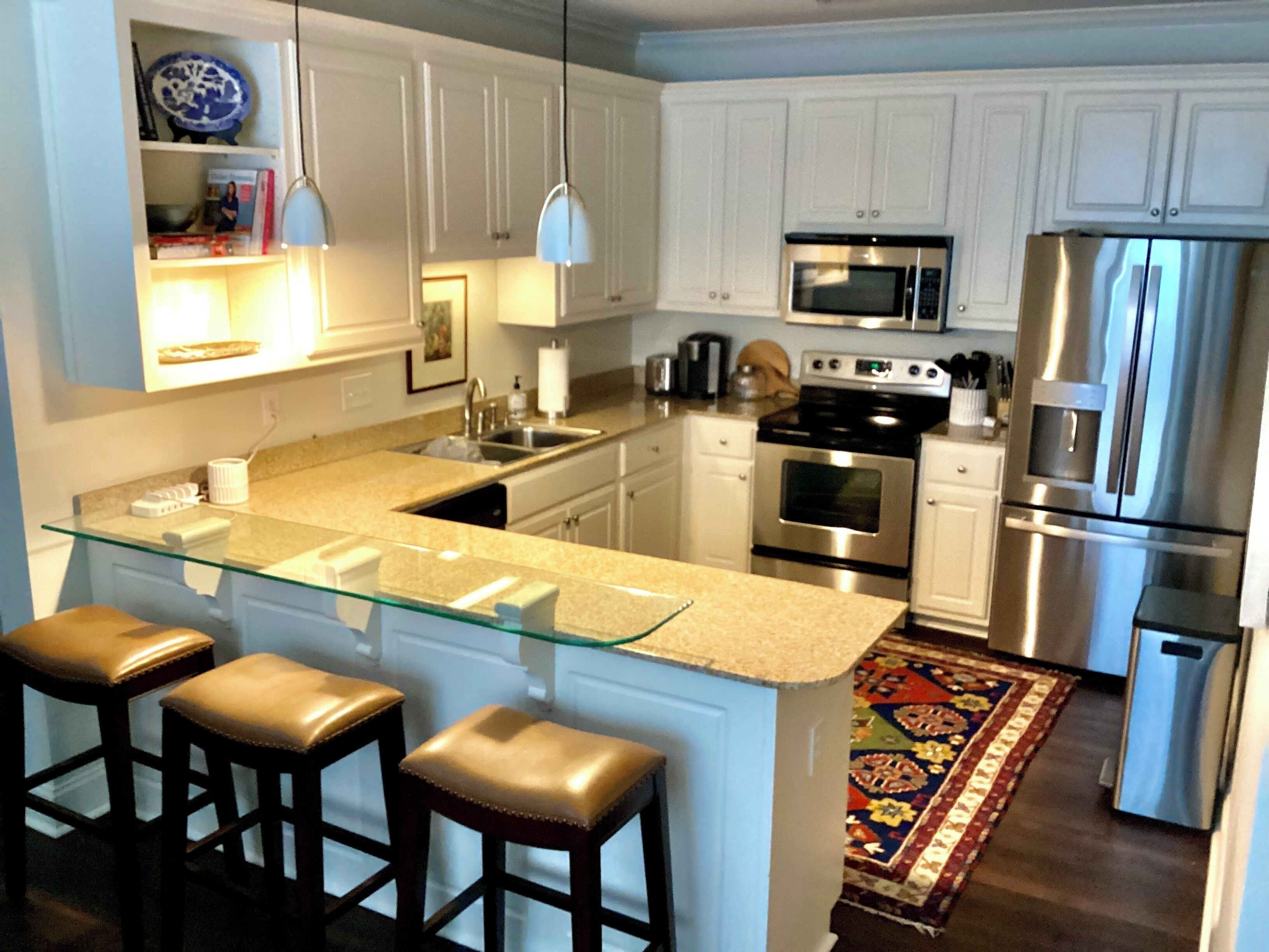 The Apartment is well appointed with original white oak wood floors, old heart pine floors in the kitchen, original 1939 Hot Point metal kitchen cabinets, marble countertops, a gas-insert fireplace, LCD TV, Queen-size sleeper sofa and a large back deck, 12’ x 20’, offering a great outdoor area for dining.
