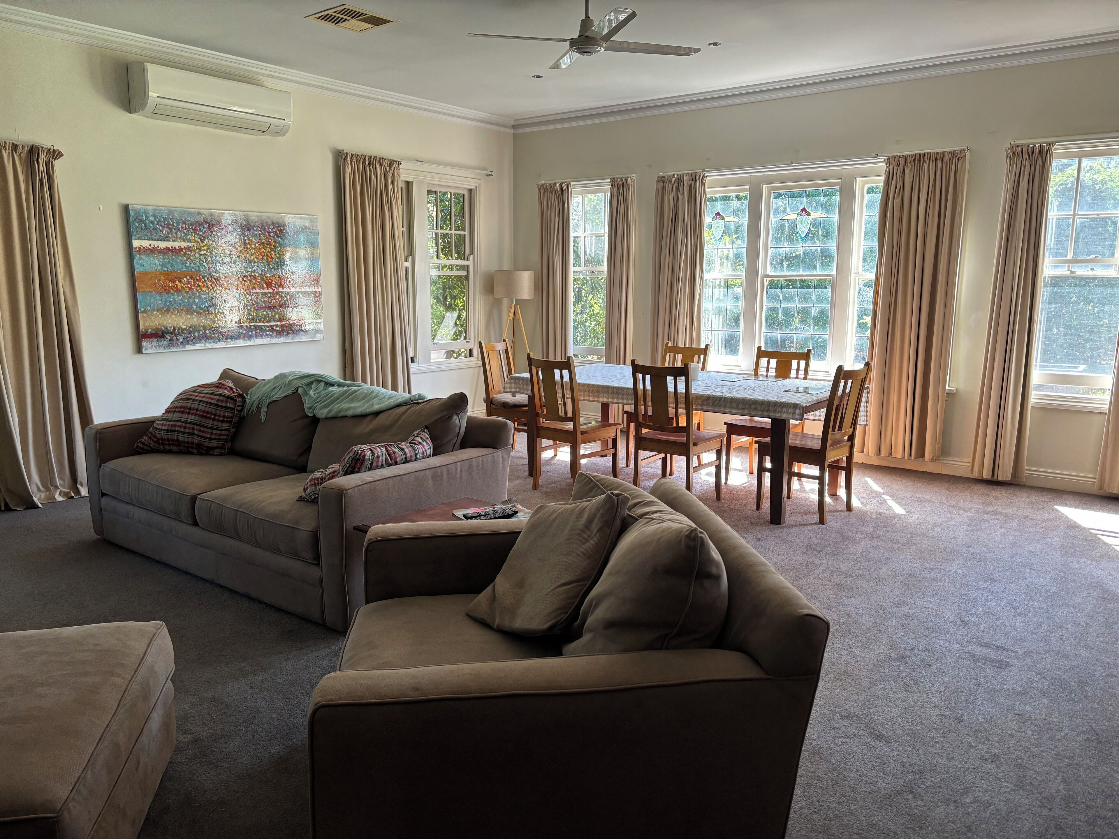 Large Californian bungalow set on 16 acres and huge well established garden, fantastic for relaxing on the wide verandahs after a day of exploring the area. Huge bedrooms, main with ensuite and WIR, very large hallway leading to the open plan kitchen, dining and lounge area. There is a Baby Weber Q on the deck for all your BBQ needs and 2 sets of "chat" seating on the verandah.