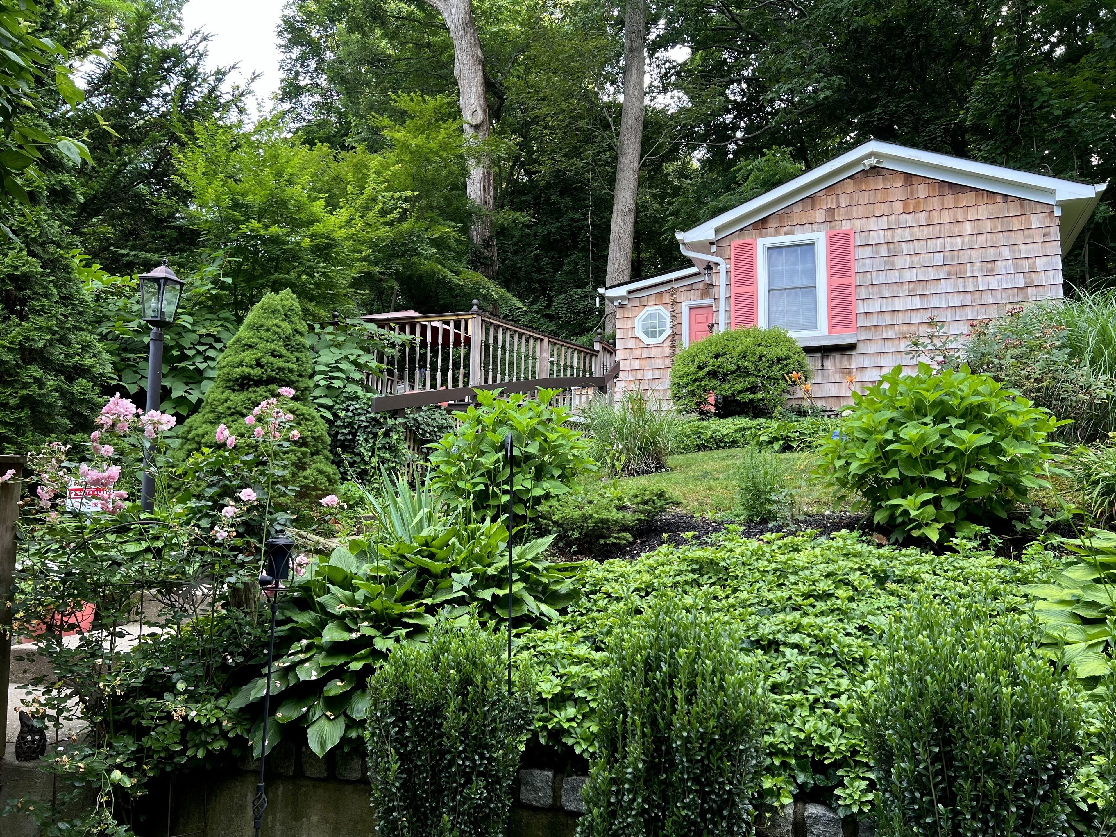 Please enjoy a morning cup of coffee or an evening glass of wine on your private deck. The deck is encompassed with a beautiful ambiance on a summer night, thanks to the private gardens, twinkling fire flies and string lights.