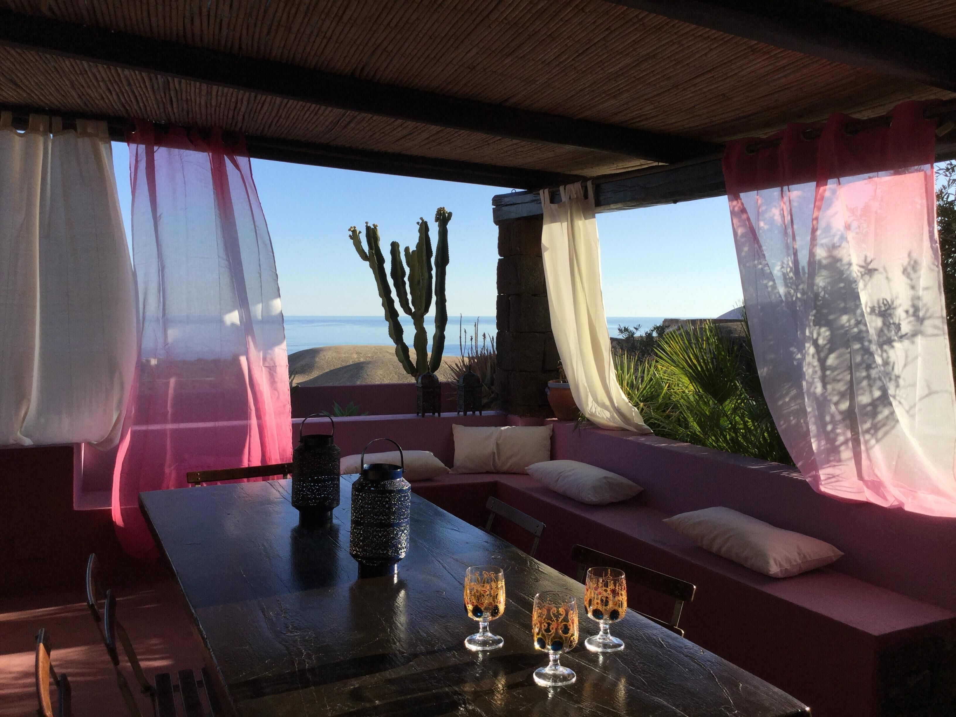 Dammuso of ancient workmanship, renovated and furnished with sobriety on the sea. Consisting of living / bedroom, bathroom with shower, bidet, hair dryer, kitchenette. Shaded terrace that overlooks the blue of the sea, with deck chairs, table for breakfasts, lunches and dinners contemplative relaxing by the sea. Another other large terrace with a comfortable outdoor shower. Barbecue. Conditioned air. The property is rented full of textiles, with mid-week change of bath towels.