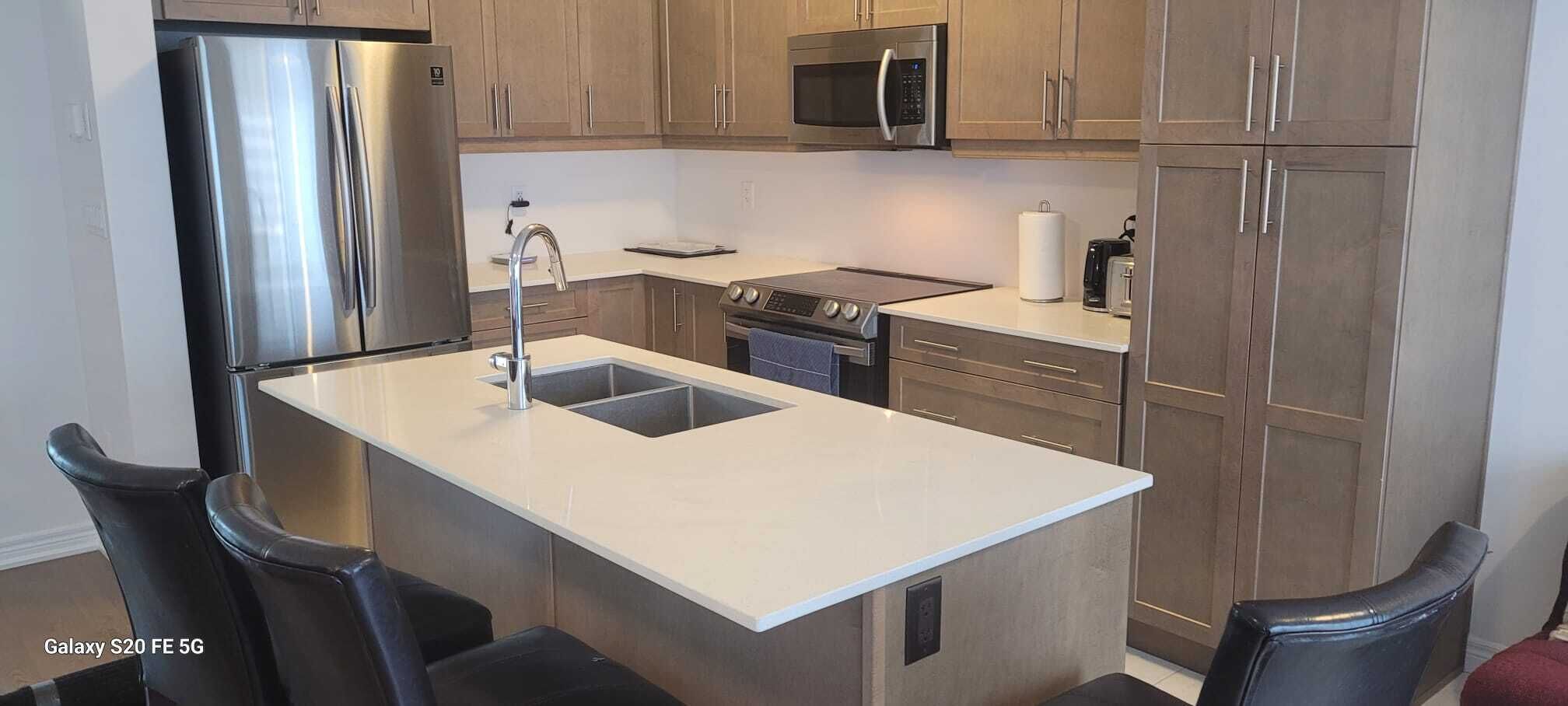 Gorgeous, light-flooded, and well-appointed 2000+ sq ft home. Our place is 2 minutes from Highway 403 and less than 5 minutes from top restaurants, walking/biking trails, a hospital, supermarkets, and gas stations.