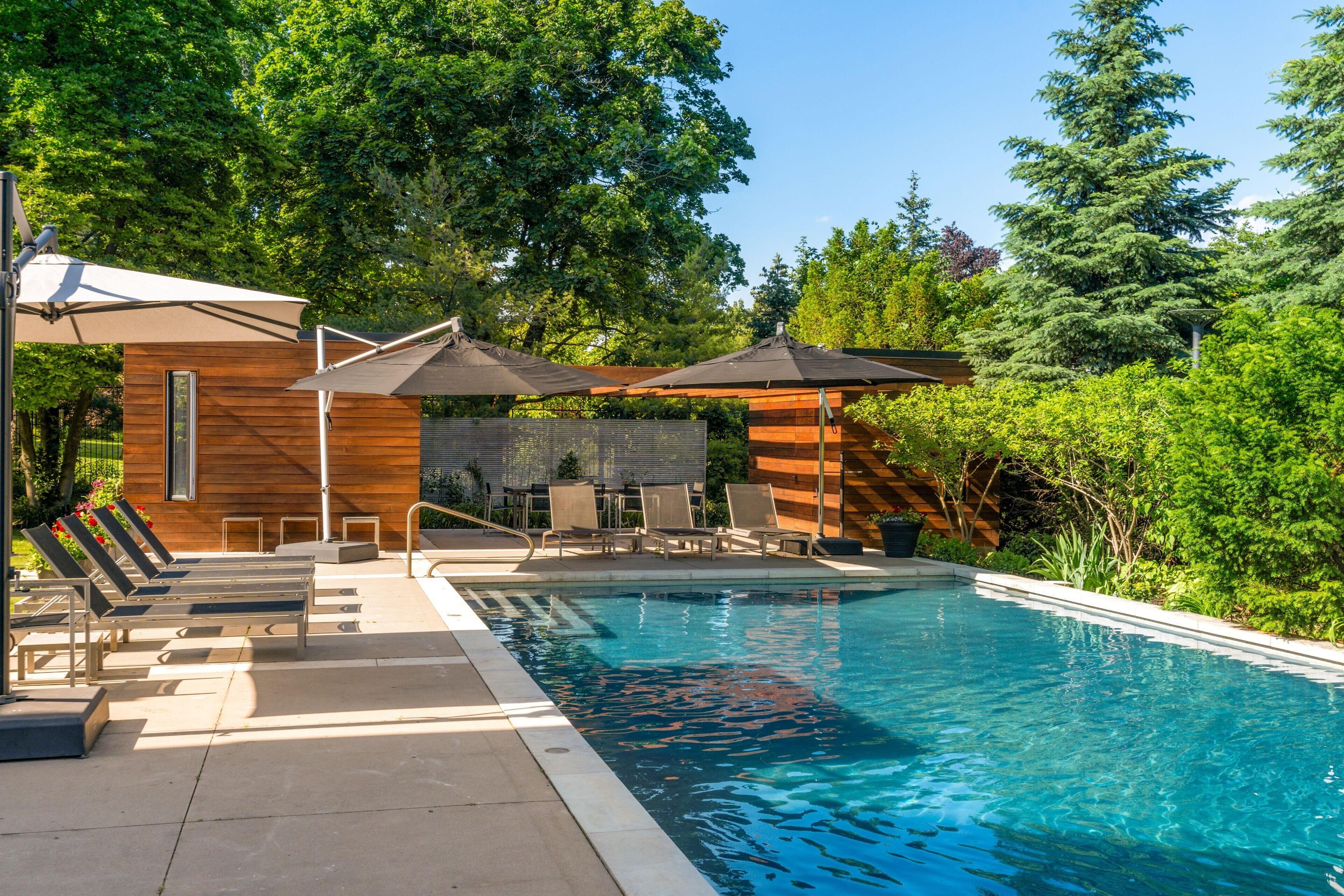THE GALLERY HOTEL - Situated on a hill, the nearly one-acre property provides the utmost in privacy and is enclosed by a tall wrought iron fence. The Gallery Hotel boasts beautiful old trees, stone terraces, lush perennial gardens, and landscaping designed by landscape architect John Lloyd. A fifty-four by twenty-foot saltwater pool, at the back of the garden has a modern design with clean lines. The main feature of the pool is a large Algonquin limestone wall with two waterfalls. The pool area is anchored at the north end by twin cabanas and a sitting or dining area covered by a pergola.