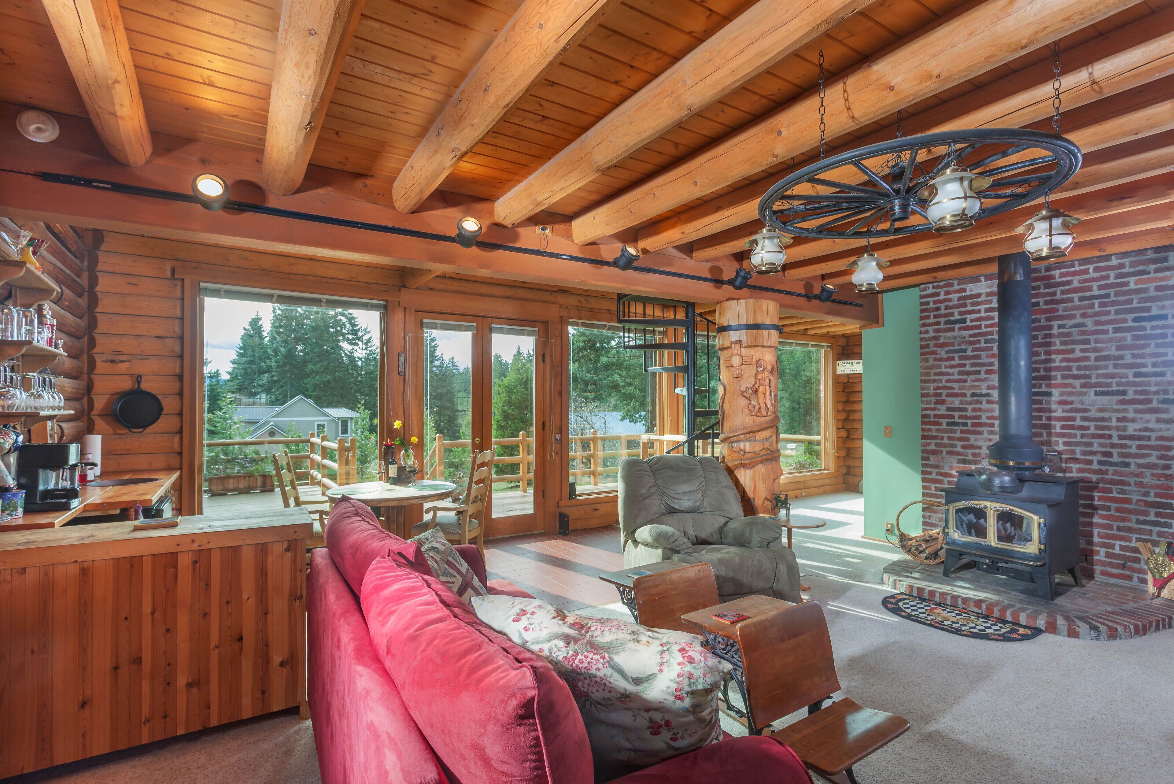The house sits next to a 1 acre meadow, surrounded by tall Douglas Fir, Scented Cedar and Big Leaf Maples. Hidden in the trees is a large area of Horsetail Ferns and huge Skunk Cabbage. Take a good book to the Adirondack chairs placed in the shade next to Trout Creek. Watch for the daily appearances of Goldfinch, three types of woodpeckers, Stellar Jays, Robins, Turkey Vultures, Northern Flickers, Hummingbirds, Rough Grouse, Nuthatches, Warblers and Northern Orioles. Keep a look out below so as not to step on the Rough Skinned Salamanders awkwardly making their way from the ferns to the creek.