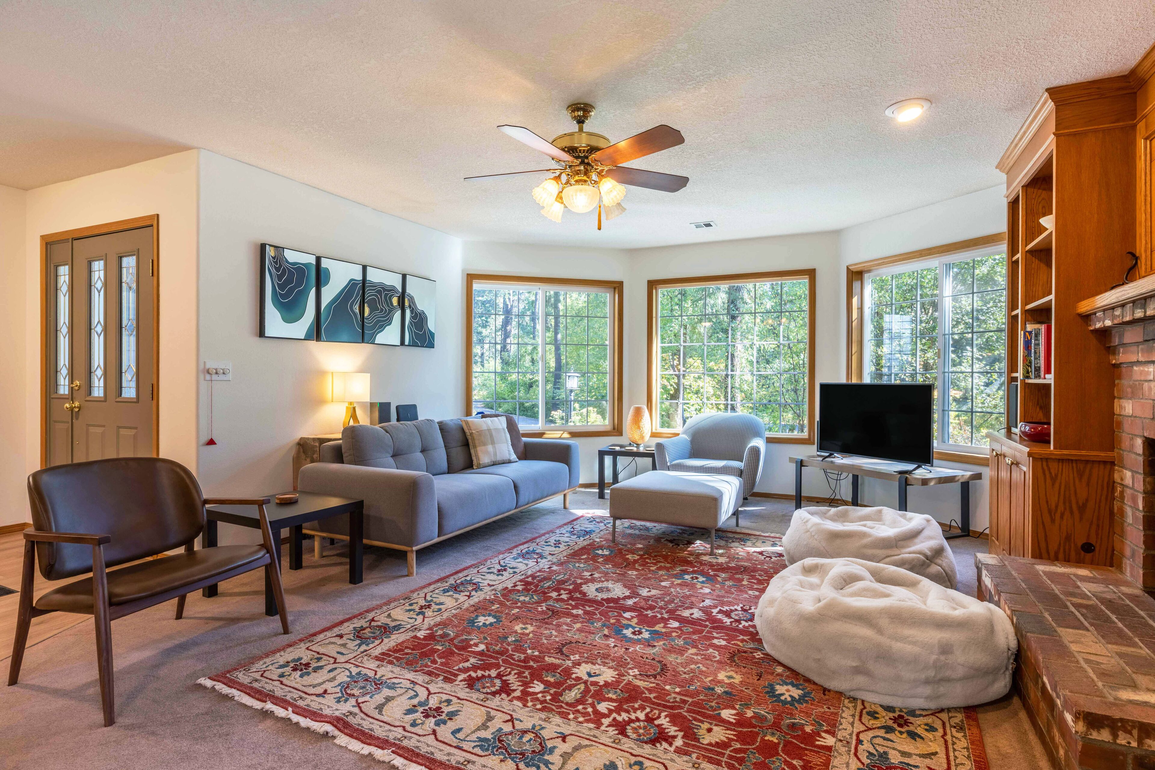 This home boasts a spacious lower level with a well-equipped, full kitchen with a breakfast bar, a pub-height dining table, and a living area warmed by a wood stove with leather sofas, and a smart TV for watching your favorite shows. Just around the corner, you'll also find a cozy reading nook with a leather chair, end table, and a selection of books. The home's high-speed internet is perfect for remote work/video conferencing, or streaming HD video.