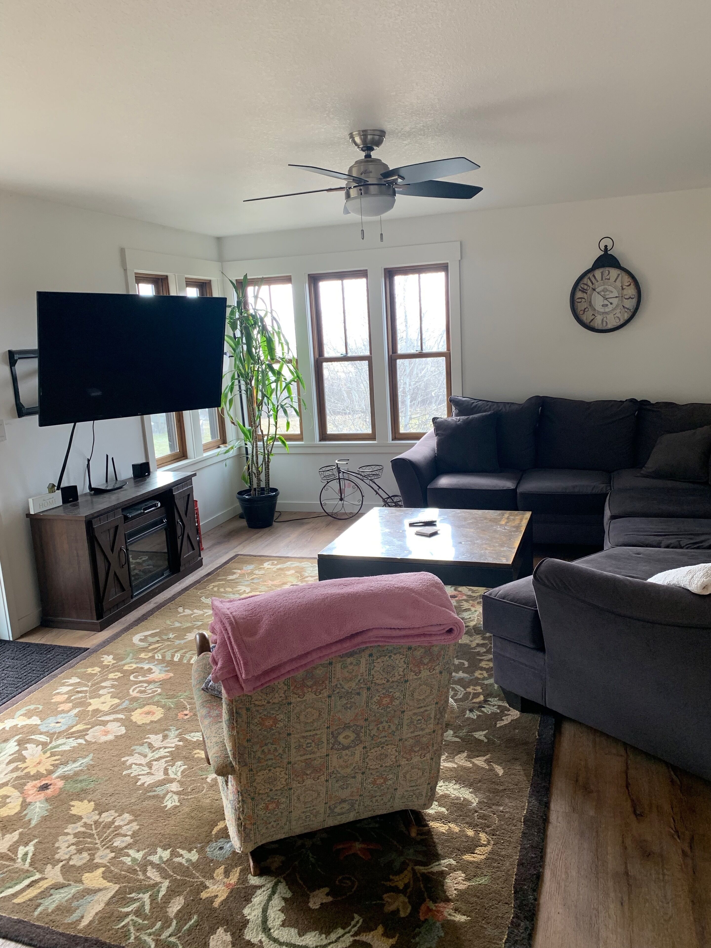 We offer premium bedding and towels, a fully equipped kitchen and a beautiful cozy place to visit with family and friends. In the rooms, you will find a full-over-full sized bunk bed (sleeps 3-4 comfortably), a queen medium firmness pillow-top bed, a king Sleep Number adjustable bed, a full-sized premium futon (sleeps 2), and a twin pull-out love seat in the living room.
