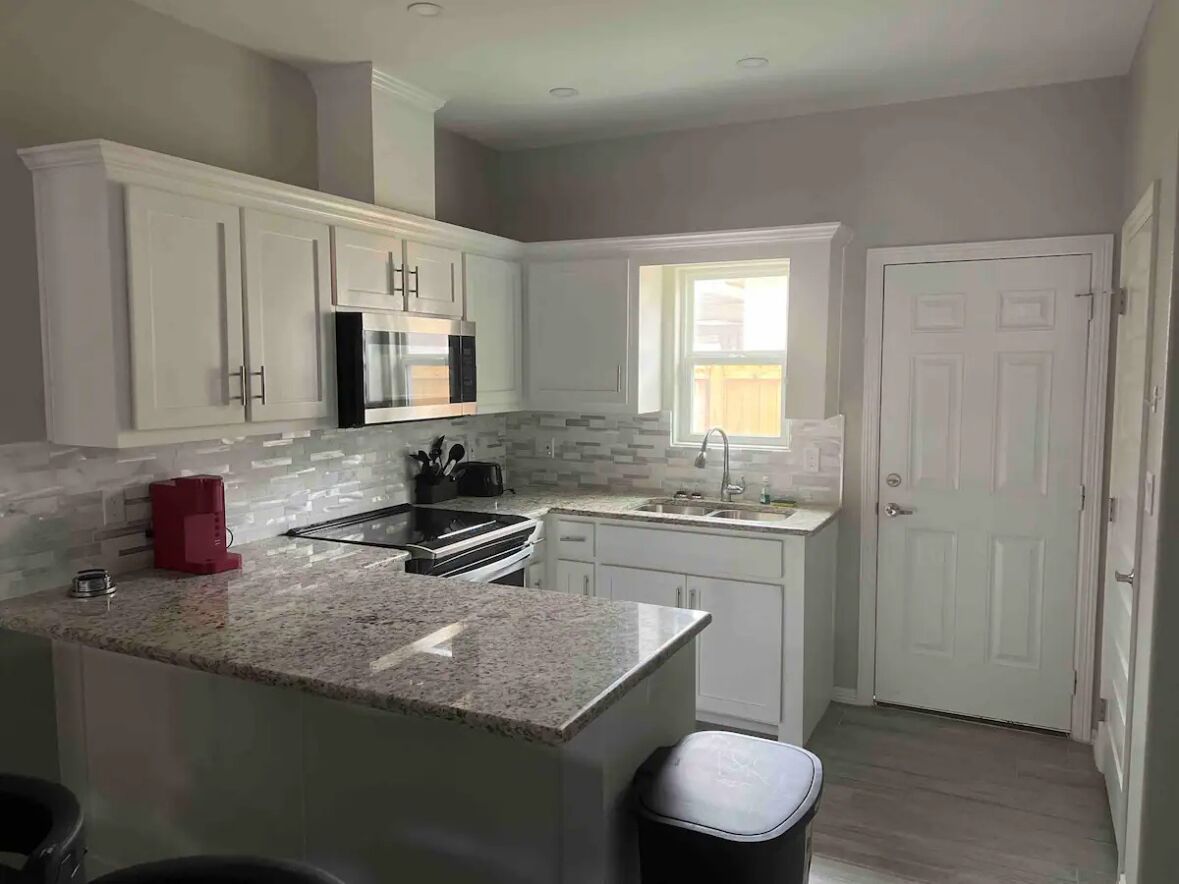 Featuring a modern design and spacious layout, this recently built town-home is conveniently located between Sugar and expressway 281. The home is upgraded with high end finishes throughout and is set up to be a peaceful and comfortable getaway while you visit the McAllen/Pharr area. We provide comfy beds and sheets for a relaxing stay. For your entertainment we provide 4k flat screen tvs in all of the main rooms, including bedrooms. The generous sized kitchen is fully stocked for your needs.