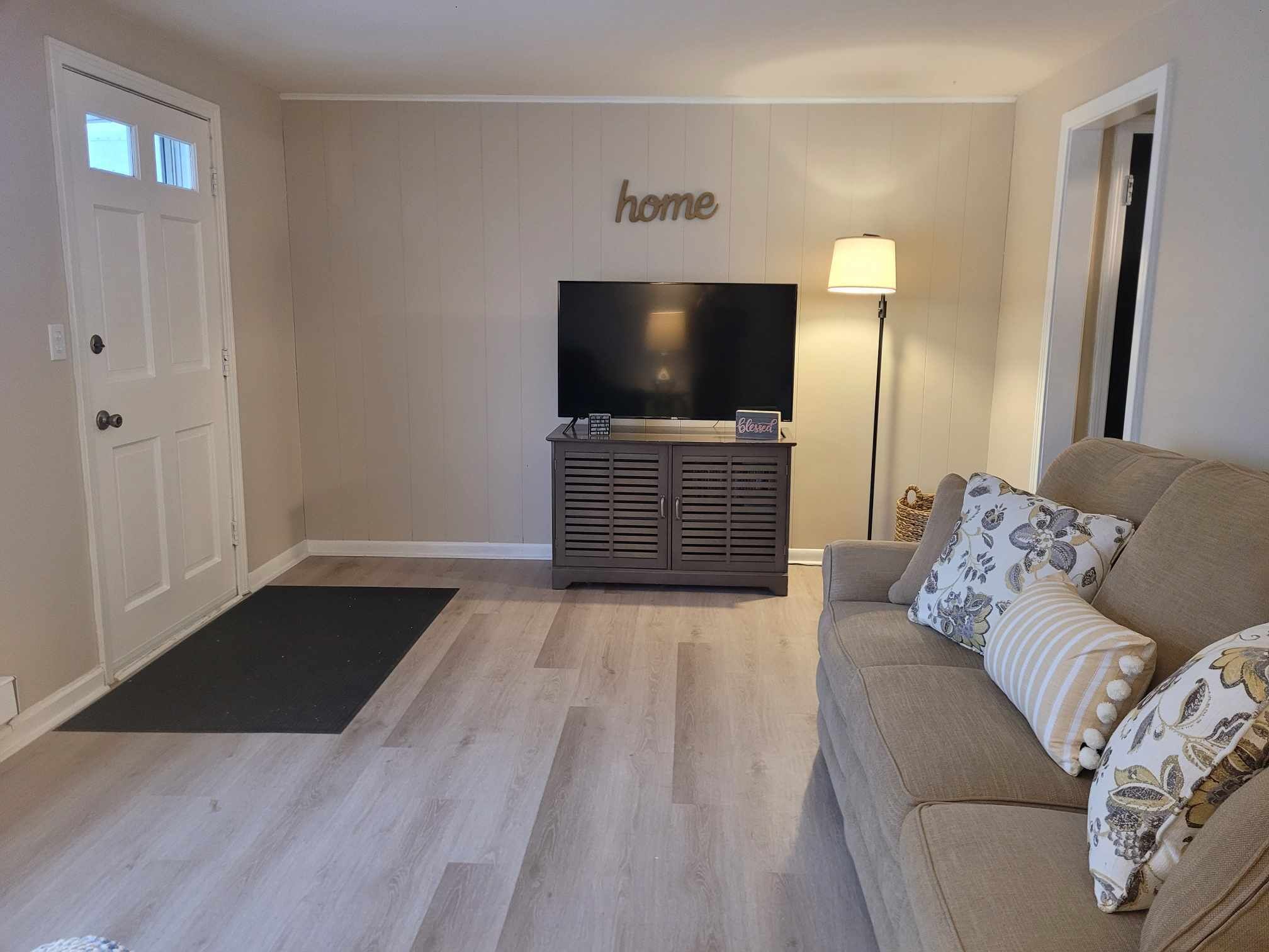 INDOOR LIVING: Flat-screen TV, washer, dryer, pellet stove